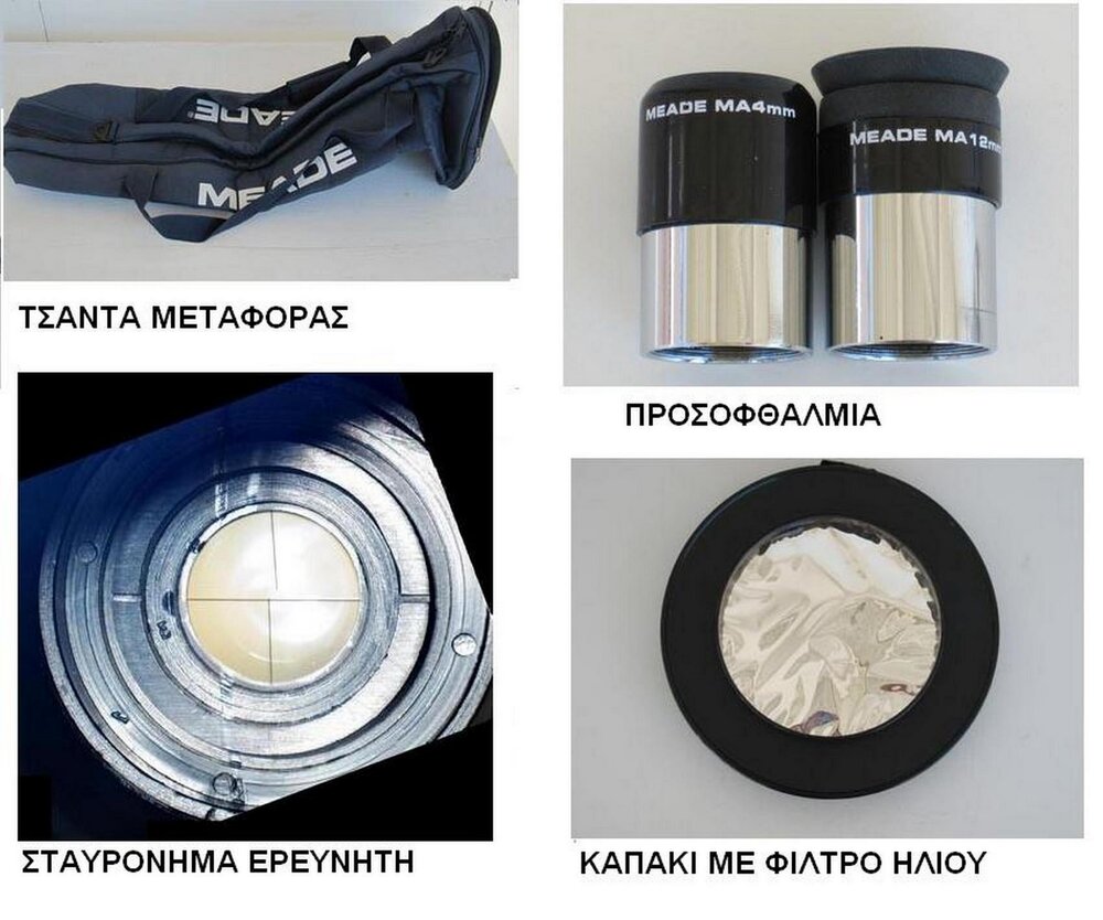 Πωλείται Solarmax 40 Coronado (http://www.meade.com/product_pages/coronado/scopes/solarmax_40.php ) Ηλιακό τηλεσκόπιο Ηα με χαρακτηριστικά : D = 40 mm FL = 400 mm ( F/10 ) Bandwidth: <0.7A BF=10 ( Blocking filter 10 mm) ( Τα κυκλοφορούντα PST 40 έχουν Bandwidth: < 1.0 A ) Στήριξη με dovetail ή απ’ ευθείας βίδωμα π.χ. σε ξύλινη πλάκα ( αυτό έκανα εγώ ). Σε άψογη κατάσταση. ======================================================== ΕΥΧΑΡΙΣΤΩ, ΓΙΩΡΓΟ ! -