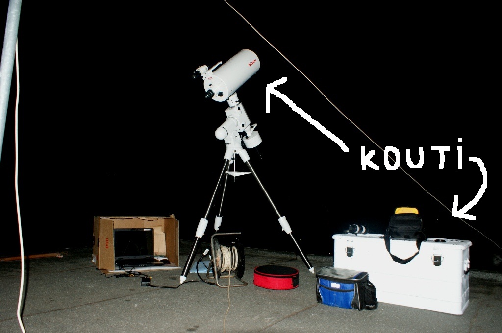 Στήριξη NEQ6 PRO GOTO Σωλήνας vixen VC200L Λάπτοπ acer TravelMate 5520 Φωτογραφηκή Μηχανή SONY A350 DSLR LIVE VIEW Με την λειτουργία DSLR LIVE VIEW και Αυτον τον Μετατροπέα που πέρνει το Αναλογικό Σήμα (Εικονικό) και το Στέλνει στο Λάπτοπ και μετατρέπεται το Αναλογικό σε Ψηφιακό. Με το Πρόγραμμα που συνοδέυεται ο μετατροπέας που επιτρέπει την Σύνδεση Φωτογραφηκής και Υπολογηστή και την Εικόνα που δίνει η μηχανή με την Λειτουργία LIVE VIEW την αποθηκέυει σε μορφή video MPEG Nομίζω Και οποιαδήποτε κινηση πχ Μια ληψη φωτογραφίας καταγράφεται.οτι χρήση κανεις στην Φωτογραφηκη και το Μενού Υπάρχει καποιος τρόπος να κανω το ιδιο με καποιο πρόγραμμα ελευθερο να το κατεβάσω επειδή βγήκε ακριβό 60ευρώ! Για Φθηνότερη Λύση Συνδέεται με ένα καλώδιο (Κιτρινο Βίσμα)που έχει η μηχανή για την τηλεόραση-Προβολή Φωτογραφίας και Μενού. Καποιο Ποιο Οικονομικό Τρόπο μπορώ να βρω. Εχει συνδέσει κάποιος την μηχανή του καπως έτσι και να το γράφει ως Βίντελήψη. Συσκευασία 59.50ευρω! Σε σύνδεση με τον Υπολογηστή με θύρα USB 2.00 Εχω Τραβήξει 220v/50 Hz-1sec Απο το σπίτι για το Τηλεσκόπιο και το Λάπτοπ. Βουνό Πάικο Απο την Ταράξα έχω καλη ορατότητα και θέα προς 3 βουνα Τις Καθαρες Μέρες Βλέπω απο Μεσιμέρι και Μετά μερος Του Ολυμπου 15.00 30-12-2009 30 Δευτερολεπτα Ασα 400 Διάφραγμα 5.6 Φωτορύπανση Φακος 18mm sony a350 Βέρμιο 3-5 Πηγάδια-Χιονοδρομικό Κέντρο Απο ταράτσα-Τηλεσκόπιο 31-12-2009 19.00 vc200l sony-a350 dslr -