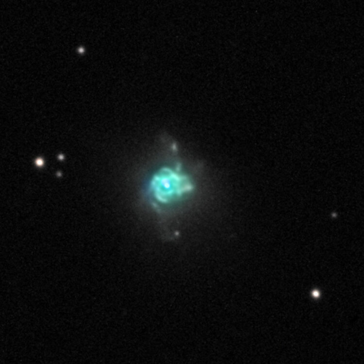 Το τριήμερο-Σαββατοκύριακο της Νέας Σελήνης, παρατηρήθηκαν μερικά από τα ωραιότερα αντικείμενα του χειμερινού ουρανού, μερικά από τα οποία παρατηρήθηκαν στην Χριστουγεννιάτικη άστρο-παρατήρηση. NGC 2419 (Intergalactic Wanderer) Σφαιρωτό σμήνος που ανήκει στον αστερισμό του Λύγκα. Βρίσκεται σε RA=07.38.10/DEC=+38.53.00 και έχει φαινόμενο οπτικό μέγεθος 10.4 και διαστάσεις 4.1 λεπτά της μοίρας. Αποτελεί έναν αξιόλογο στόχο, επειδή είναι το πιο απομακρυσμένο σφαιρωτό του ουρανού. Οπτικά, σε χαμηλή μεγέθυνση, είναι μικρό-σχεδόν αστρικό και χρειάζεται πλάγια όραση (averted vision) για να εντοπιστεί. Σε μεσαία μεγέθυνση, διατηρεί το μικρό του μέγεθος, αλλά είναι πιο εμφανές, λόγω του κυκλικού του-σχεδόν σφαιρικού του σχήματος. Το χρώμα του είναι γκρι. Σε υψηλή μεγέθυνση, διατηρεί το μικρό του μέγεθος, το κυκλικό του σχήμα αλλά παραμένει να είναι απλώς ένα σύννεφο με λίγες λεπτομέρειες ορατές στην επιφάνεια του. Βρίσκεται μέσα σε ένα τρίγωνο άστρων. NGC 2392 (Eskimo Nebula) Πλανητικό νεφέλωμα στον αστερισμό των Διδύμων. Βρίσκεται σε RA=07.29.20/DEC=+20.55.00 και έχει φαινόμενο οπτικό μέγεθος 9.9 και διαστάσεις 13/44 δευτερόλεπτα της μοίρας. Οπτικά, σε χαμηλή μεγέθυνση, είναι μικρό-σχεδόν αστρικό και χρειάζεται σύγκριση με γειτονικά άστρα. Επίσης, είναι εμφανές το γαλάζιο χρώμα του. Σε μεσαία μεγέθυνση, διατηρεί το μικρό του μέγεθος, αλλά είναι εμφανές το κυκλικό-σχεδόν δίσκος σχήμα του και το γαλάζιο χρώμα του. Σε υψηλή μεγέθυνση, διατηρεί το κυκλικό του σχήμα-σχεδόν δίσκος αλλά εμφανίζονται πολλές λεπτομέρειες στην επιφάνεια του. Γενικά, είναι ένα όμορφο αντικείμενο για παρατήρηση. NGC 1535 (Cleopatra's Eye) Πλανητικό νεφέλωμα και αυτό που ανήκει στον αστερισμό του Ηριδανού. Βρίσκεται σε RA=04.14.20/DEC=-12.44.00 και έχει φαινόμενο οπτικό μέγεθος 9.6 και διαστάσεις 18/44 δευτερόλεπτα της μοίρας. Οπτικά, σε χαμηλή μεγέθυνση, είναι μικρό-σχεδόν αστρικό αντικείμενο, παρά το λαμπρό του μέγεθος. Σε μεσαία μεγέθυνση, διατηρεί το μικρό σχήμα του, αλλά είναι ορατή η κυκλική του διάσταση και το γαλάζιο χρώμα του. Σε υψηλή μεγέθυνση, διατηρεί το γαλάζιο χρώμα του, την δισκοειδής-κυκλική μορφή του και λεπτομέρειες ορατές στην επιφάνεια του. Ένα πραγματικά όμορφο αντικείμενο!!!! NGC 1647 Ανοιχτό σμήνος που ανήκει στον αστερισμό του Ταύρου. Βρίσκεται σε RA=04.46.00/DEC=+19.04.00 και έχει φαινόμενο οπτικό μέγεθος 6.4 και διαστάσεις 45 λεπτά της μοίρας. Χρειάζεται χαμηλή-μεσαία μεγέθυνση για την παρατήρηση του. Πιο συγκεκριμένα, είναι τεράστιο, με μέτρια ποιότητα, καλή ανάλυση και μέτρια αραιό και τέλος, καλή συγκέντρωση. Επίσης, είναι μέτρια όμορφο και από τα 200 άστρα που περιέχει, καταγράφηκαν τα 31. Υπόλοιπα αντικείμενα που παρατηρήθηκαν: IC 2149=Πλανητικό-Ηνιόχος NGC 1514=Πλανητικό-Ταύρος NGC 2175=Ανοιχτό-Ωρίων NGC 2395=Ανοιχτό-Δίδυμοι NGC 1647=Ανοιχτό-Ταύρος NGC 1664=Ανοιχτό-Ηνίοχος NGC 1857=Ανοιχτό-Ηνίοχος NGC 1778=Ανοιχτό-Ηνιόχος NGC 2158=Ανοιχτό-Δίδυμοι NGC 2331=Ανοιχτό-Δίδυμοι NGC 2420=Ανοιχτό-Δίδυμοι NGC 1893=Ανοιχτό-Ηνίοχος NGC 1907=Ανοιχτό-Ηνίοχος NGC 2281=Ανοιχτό-Ηνίοχος NGC 1662=Ανοιχτό-Ωρίων NGC 1807=Ανοιχτό-Ταύρος NGC 1817=Ανοιχτό-Ταύρος Αποτυχημένη-ες προσπάθεια-ες: NGC 2343=Ανοιχτό-Μονόκερος NGC 2353=Ανοιχτό-Μονόκερος Τόπος=Βοιωτία Εξοπλισμός= NexStar 130 SLT Φίλτρα=UCH Χάρτης=Cambridge Star Atlas NGC 2419 (Intergalactic Wenderer) NGC 2392 (Eskimo Nebula) NGC 1535 (Cleopatra's Eye)