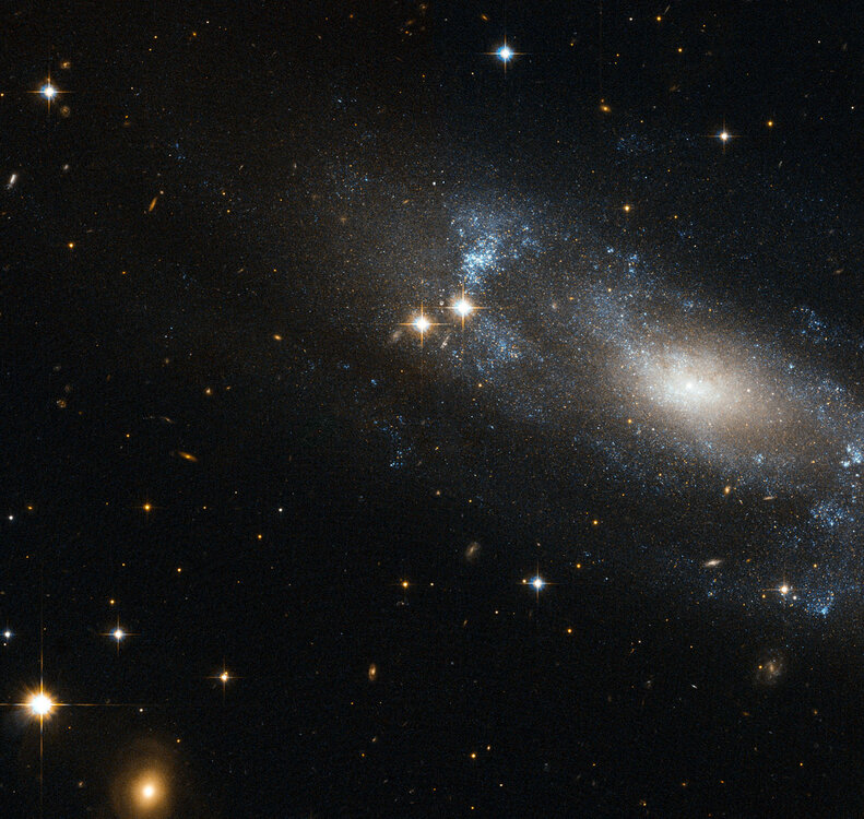 To Hubble κατέγραψε σπειροειδή γαλαξία. Το διαστημικό τηλεσκόπιο της NASA εντόπισε και κατέγραψε τον σπειροειδή γαλαξία ESO 499-G37,ο οποίος καταγράφηκε σε ευρύ φωτογραφία και τα αποτελέσματα έδειξαν πως οι σπείρες του έχουν σχεδόν χαθεί και μια πιθανή αιτία είναι μια υποτιθέμενη σύγκρουση του με άλλον γαλαξία.Περιέχει καυτά,νεαρά άστρα τα οποία βρίσκονται στις αχνές σπείρες τους,οι οποίες αποτελούνται από αέρια και σκόνη και σε ορισμένα μέρη υπάρχουν περιοχές αστρογένεσης.Το πιο χαρακτηριστικό του συγκεκριμένου γαλαξία είναι ο επιμήκης πυρήνας που έχει.Η κεντρική δομή του περιέχει την μεγαλύτερη ποσότητα άστρων,η οποία προφανώς αποτελείται από κρύα άστρα.Η περιοχή που τους καλύπτει είναι συμπιεσμένη και σφαιρική. http://www.nasa.gov/mission_pages/hubble/science/eso499-g37.html
