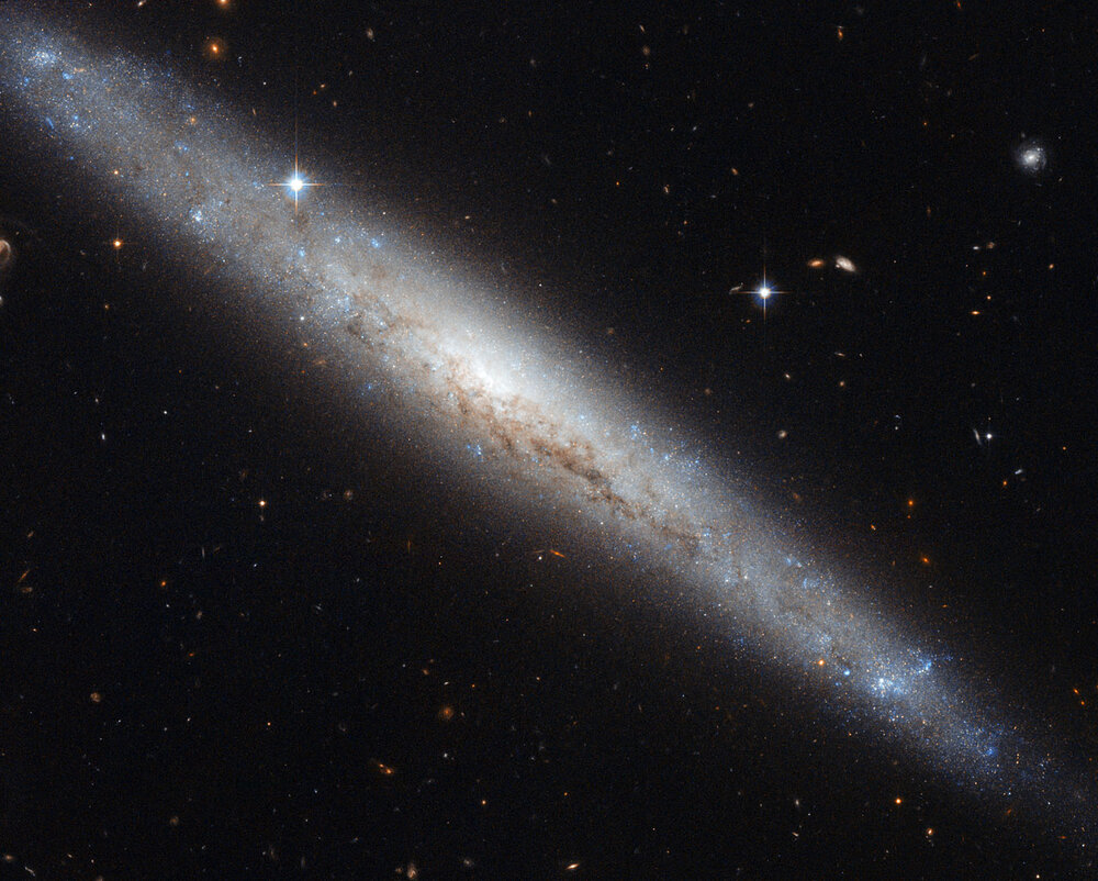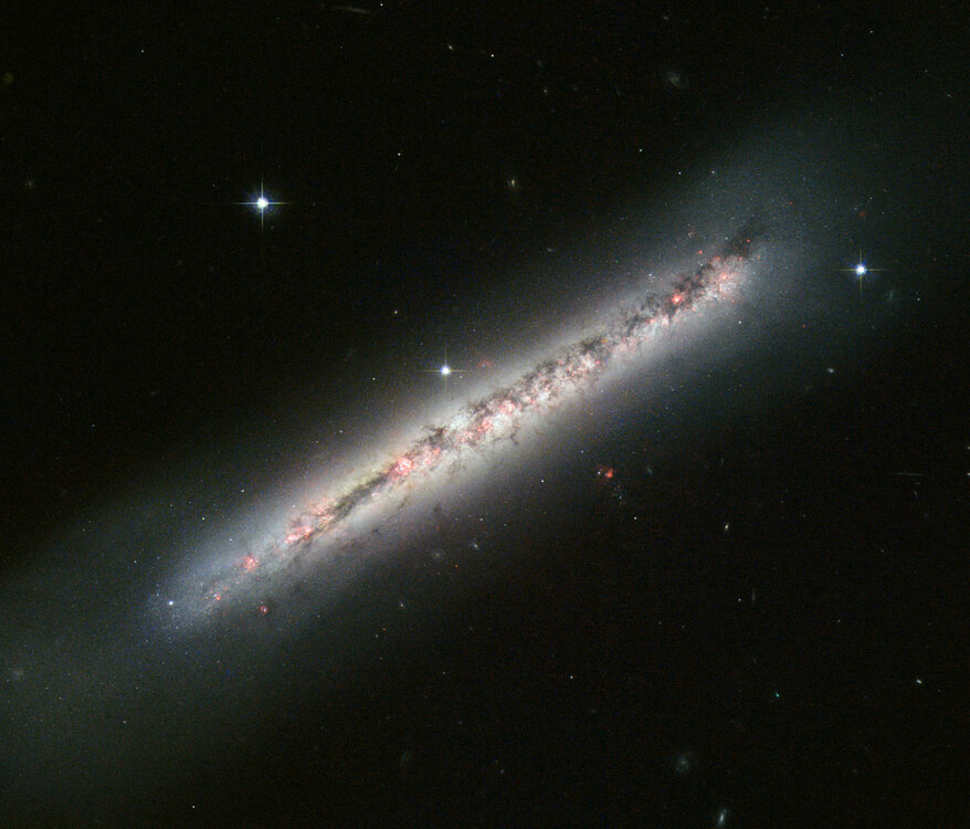 Αέρια στον γαλαξία NGC 4634. Το διαστημικό τηλεσκόπιο της NASA "Hubble" φωτογράφησε τον σπειροειδή γαλαξία NGC 4634 ο οποίος είναι edge-on.Βρίσκεται σε απόσταση 70 εκατομμύρια έτη φωτός μακριά στον αστερισμό της Κόμης Βερενίκης και ο γειτονικός του γαλαξίας,NGC 4633 βρίσκεται στο βορειοανατολικό άκρο του 4634 και αυτό μπορεί εύκολα να εντοπιστεί με τα ερασιτεχνικά τηλεσκόπια. http://www.nasa.gov/mission_pages/hubble/science/ngc4634.html
