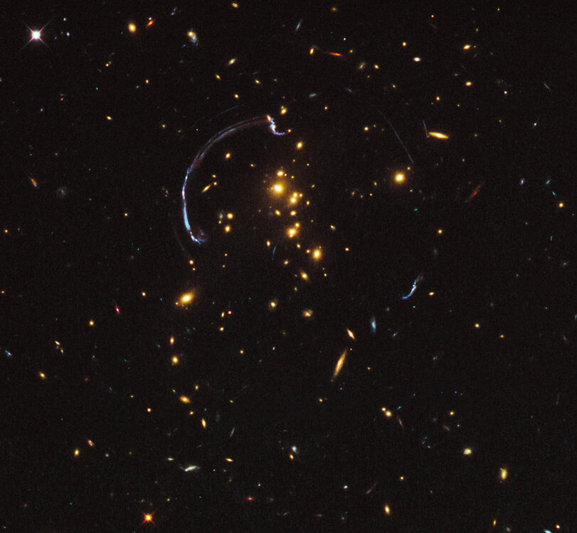Κοντινό πλάνο σε γαλαξία. Χάρη στην παρουσία ενός διαστημικού "ζούμ",το διαστημικό τηλεσκόπιο Hubble της NASA φωτογράφησε σε κοντινό πλάνο έναν λαμπρό γαλαξία που μόλις είχε ανακαλυφθεί.Η παρατήρηση αυτή παρείχε την μοναδική ευκαιρία να μελετηθούν οι φυσικές ιδιότητες ενός οποιουδήποτε γαλαξία του οποίου τα αστέρια σχηματίζονται με σθεναρό τρόπο.Αυτό μπορεί να συμβαίνει στην περίπτωση που το Σύμπαν ήταν το ένα τρίτο της σημερινής του ηλικίας. http://www.nasa.gov/mission_pages/hubble/science/magnified-galaxy.html