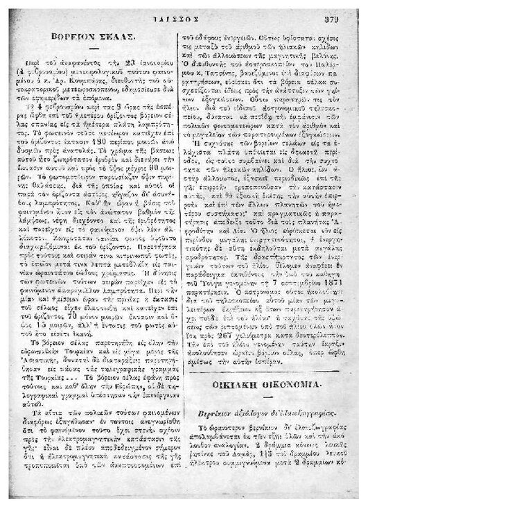 119. Βαλσαμάκη Γ. Η., «Περί της μεθόδου DOPPLER-FIZEAU, δι’ ης επιτρέπεται ο δια της φωτοαναλύσεως προσδιορισμός της ταχύτητος των άστρων κατά την διεύθυνσιν της οπτικής ακτίνος» (σε συνέχειες), δημοσιεύθηκε στον «Νεολόγο» της Κωνσταντινούπολης, Τ.2, Τευχ. 11, το 1893, σσ. 204-206.     Μια σελίδα