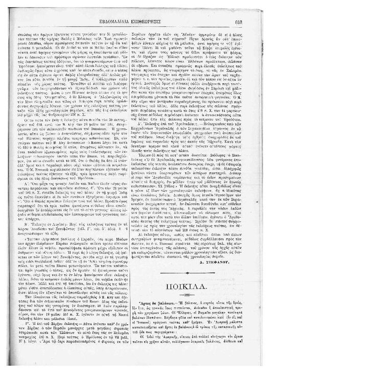 79. Στεφάνου Δ., «Περί τινών κατά την αρχαιότητα εκλείψεων του Ηλίου», δημοσιεύθηκε στον «Νεολόγο» της Κωνσταντινούπολης, Τ. 1, Τευχ. 40, το 1892, σ. 633. Σελίδα