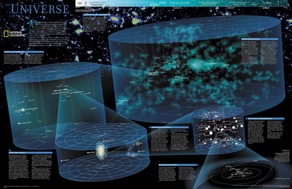 Τρεις εντυπωσιακοί χάρτες από το National GeographicMich δημοσίευσε μια συζήτηση σε Αστρονομικές Εκδόσεις Λίγο μεγάλα τα αρχεία, θεωρώ όμως ότι αξίζουν τον κόπο. The Solar System 1981 The Milky Way The Universe