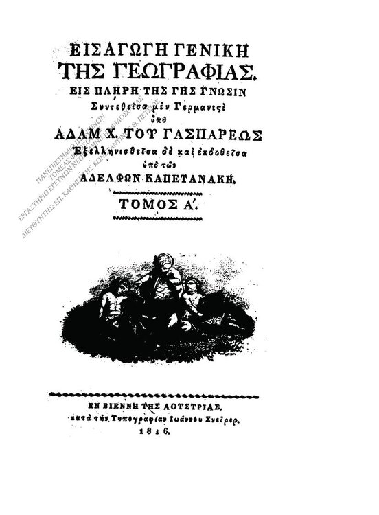 ΑΣΤΡΟΝΟΜΙΚΗ ΓΝΩΣΗ ΣΕ ΕΛΛΗΝΙΚΑ ΠΑΛΑΙΤΥΠΑ ΒΙΒΛΙΑMich απάντησε στην συζήτηση του/της Mich σε Αστρονομικές Εκδόσεις 44. Καπετανάκης Κυριάκος-Μανουήλ – μετάφραση, «Εισαγωγή γενική της Γεωγραφίας εις πλήρη της γης γνώσιν», Τόμος Α΄, περιέχει κεφάλαια για τις διάφορες κινήσεις της γης, για το Ηλιακό σύστημα, τους Πλανήτες, τον Ήλιο, τη Σελήνη, τις εκλείψεις, τους Κομήτες, εκδόθηκε στη Βιέννη το 1816. Σχήματα Σελίδα 2 Σελίδα 1 Το εξώφυλο