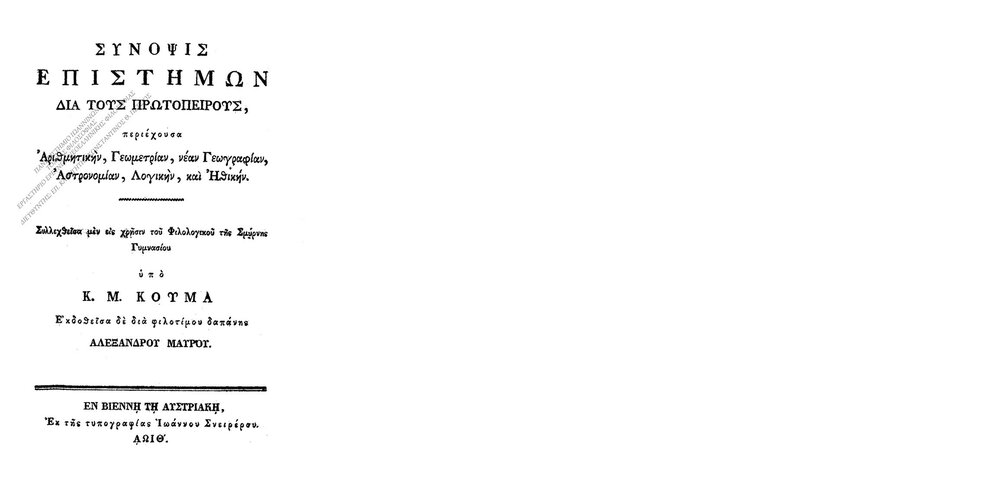 ΑΣΤΡΟΝΟΜΙΚΗ ΓΝΩΣΗ ΣΕ ΕΛΛΗΝΙΚΑ ΠΑΛΑΙΤΥΠΑ ΒΙΒΛΙΑMich απάντησε στην συζήτηση του/της Mich σε Αστρονομικές Εκδόσεις 37. Κούμας Κωνσταντίνος, «Σύνοψις επιστημών διά τους πρωτοπείρους, Γεωγραφία………..Αστρονομίαν,……», κεφάλαια για τους Αστέρες και τους Αστερισμούς, το πλανητικό σύστημα, εκδόθηκε στη Βιέννη το 1819. Πίνακας Σελίδα 2 Σελίδα 1 Το εξώφυλο