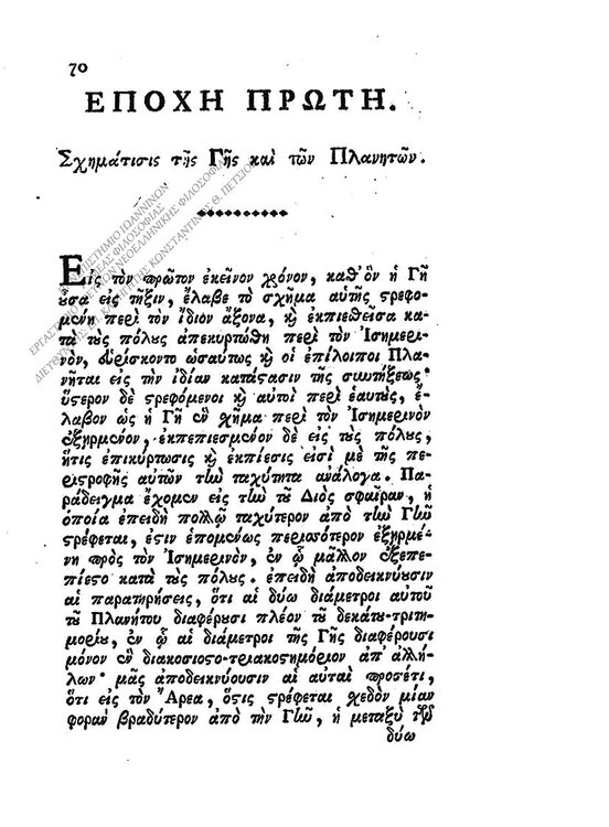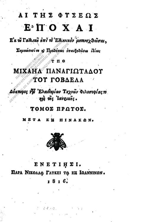 ΑΣΤΡΟΝΟΜΙΚΗ ΓΝΩΣΗ ΣΕ ΕΛΛΗΝΙΚΑ ΠΑΛΑΙΤΥΠΑ ΒΙΒΛΙΑMich απάντησε στην συζήτηση του/της Mich σε Αστρονομικές Εκδόσεις 33. Μιχαήλ Παναγιωτάδης – Γοβδελάς μετάφραση με προσθήκες, «Αι της φύσεως εποχαί», Τόμος 1, ουσιαστικά πρόκειται περί Κοσμολογίας, εκδόθηκε στη Βενετία το 1816. Σελίδα 2 Σελίδα 1 Εξώφυλο