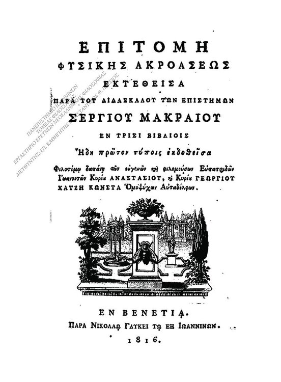 ΑΣΤΡΟΝΟΜΙΚΗ ΓΝΩΣΗ ΣΕ ΕΛΛΗΝΙΚΑ ΠΑΛΑΙΤΥΠΑ ΒΙΒΛΙΑMich απάντησε στην συζήτηση του/της Mich σε Αστρονομικές Εκδόσεις 39. Σέργιος Μακραίος, «Επιτομή Φυσικής ακροάσεως», περιλαμβάνει κεφάλαια για τους Κομήτες, τα Μετέωρα, εκδόθηκε στη Βενετία το 1816. Μια σελίδα To εξώφυλο