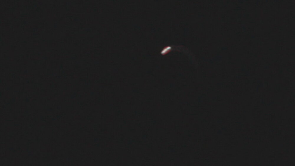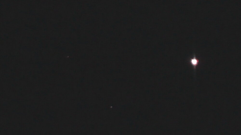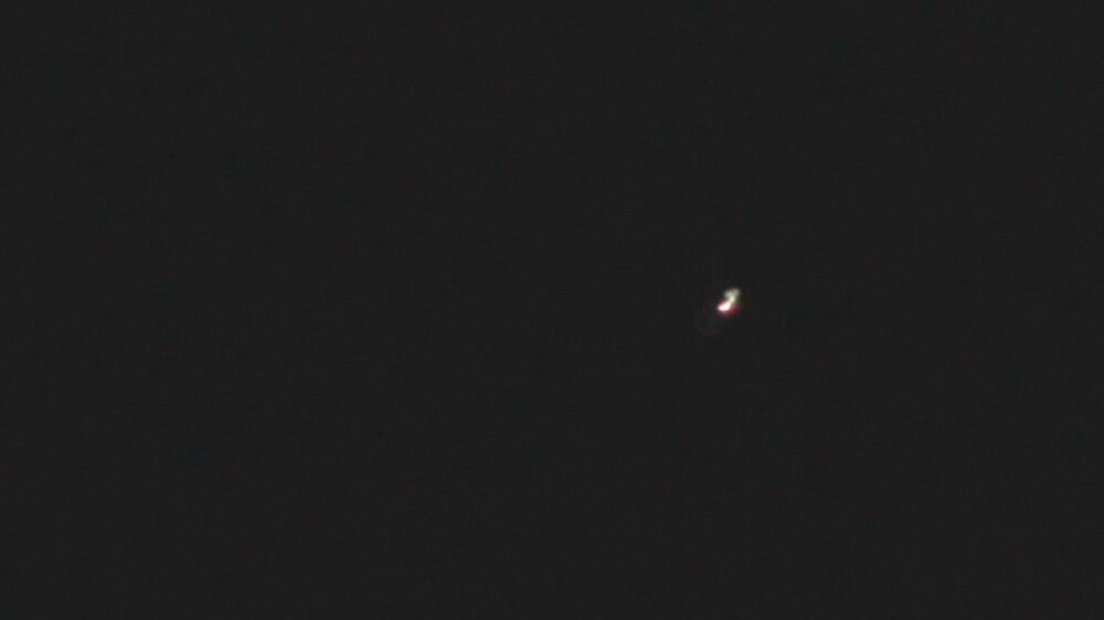 Από τη σημερινή διάβαση γύρω στις 18:27 με mag -1,3, με βιντεοκάμερα (το zoom πρέπει να έπαιζε από 30Χ μέχρι 70Χ). Μερικά μεμονομένα καρέ στα οποία πάει να διακριθεί το σχήμα (από τα χιλιάδες καρέ της λήψης, οι ουρές είναι από το κούνημα του χεριού, μάλλον για σταθερότητα στη λήψη χρειάζεται προπόνηση με διαβάσεις αεροπλάνων).