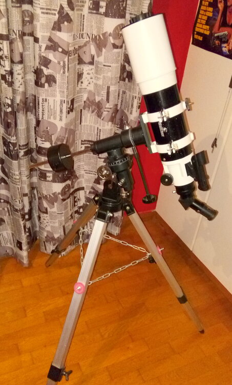 Πωλείται αχρωματικό f/5 της skywatcher με ερευνητή Star Pointer, 2 προσοφθαλμια 25mm & 10mm και διαγώνιο 45° Τιμη 150e Μαζί με την ισημερινή βάση 200e Επικοινωνια με πμ