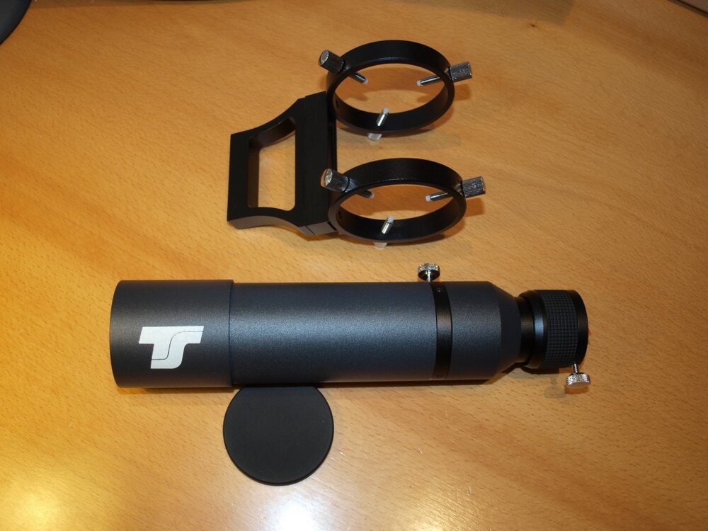 Πωλείται Finder της Telescope Service. TS Optics 50 mm viewfinder & compact telescope with straight 1.25" helical focuser. Technical details: -- Achromatic objective -- Focal length: 205mm -- OTA diameter: 55mm -- Mechanical length: 250mm -- 1.25" helical focuser -- Weight incl. bracket: 320 g Ο ερευνητής δεν διαθέτει προσοφθάλμιο, είναι κατάλληλος για χρήση με οδηγητική κάμερα. Διαθέτει βάση με δακτυλίδια και στήριγμα βάσης. Το στήριγμα της βάσης διαθέτει 3 τρύπες για τη στερέωσή του σε plate, τις δύο από αυτές τις έχω διευρύνει σε μηχανουργείο ώστε να περνάνε βίδες 6mm. Σε άριστη κατάσταση, χωρίς σημάδια ή γρατσουνιές, αγορασμένο πριν από δύο μήνες από Aktis στη Θεσσαλονίκη. Έχει χρησιμοποιηθεί 4 φορές για οδήγηση (με LVI). Τιμή 60 Ευρώ. Περισσότερες πληροφορίες: http://www.teleskop-express.de/shop/product_info.php/language/en/info/p4064_TS-50mm-Sucher-geradsichtig---mit-Halter---1-25--Helical-Auszug.html Δημήτρης Επικοινωνία με π.μ. ή e-mail: dvalianos@hotmail.com
