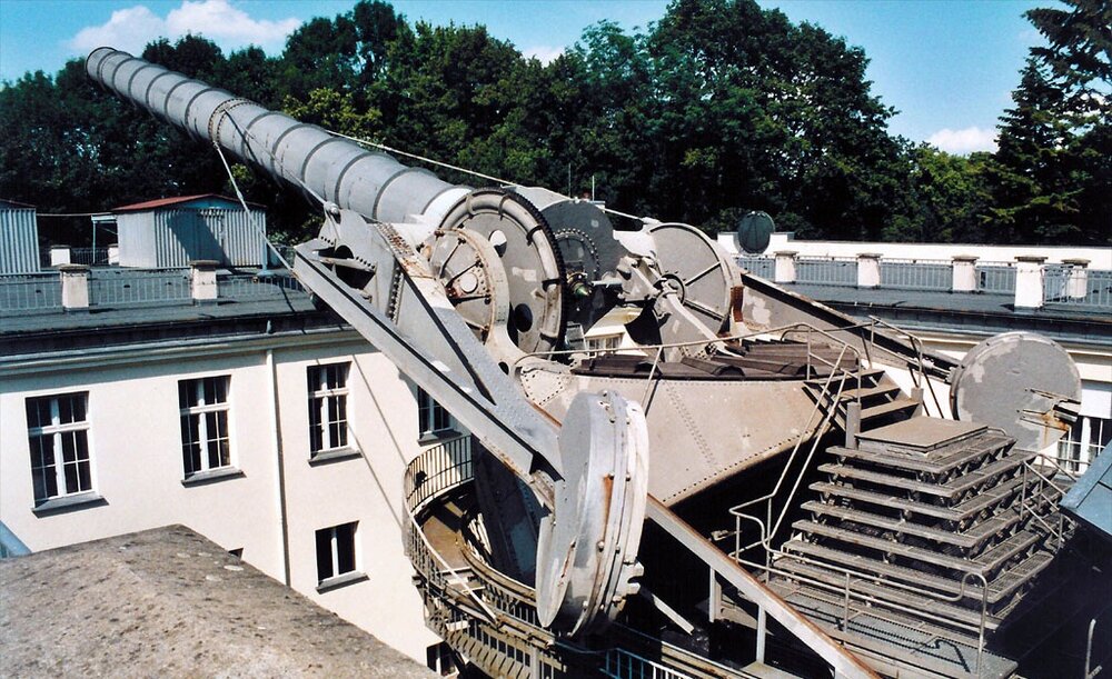 Archenhold-Observatory Berlinziorange απάντησε στην συζήτηση του/της ziorange σε Εξορμήσεις και τόποι παρατήρησης Με μεγάλη μου χαρά αφού όταν βρισκόμουν εκεί σκεφτόμουν όλους εσάς που ψάχνετε τα άστρα! Αξίζει πιστεύω να σημειωθεί ακόμα πως η στήριξη του τηλεσκόπιου είναι ισημερινή και για να σταματήσει να κινείται χρειάζεται λίγος χρόνος λόγο του μεγάλου βάρους. Η σκόπευση γίνεται από ερευνητή αλλά και από μία πολύ μικρή οπή μηδενικής μεγέθυνσης που μπορείτε να την διακρίνετε στην 2η φωτογραφία!
