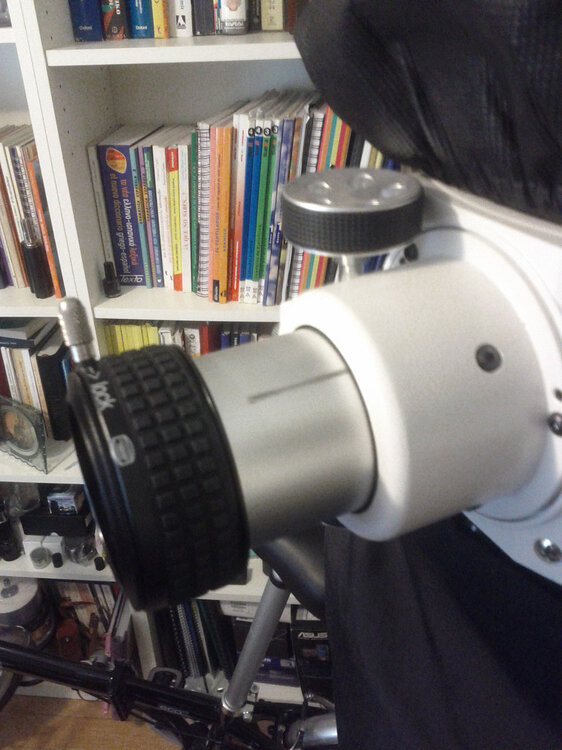 Μόλις έκανα μια δοκιμή με το νέο setup. Η ευθυγράμμιση τέλεια!!! Γυρνάς το laser γύρω γύρω , και ή κουκκίδα στο ίδιο σημείο. Καμιά σχέση με τα βιδάκια. (Concenter + TuBlug) Μια γενική παρατήρηση είναι ότι όλοι οι 1.25 εστιάζουν κοντά στο εσωτερικό τέρμα του εστιαστή ενώ πριν κάπου στο κέντρο, και όλοι οι 2" (Nagler 26, Panoptic 35) κοντά στο έξω τέρμα του εστιαστή ενώ πριν στο έσω , εκτός από τον NLVW 30mm που τώρα εστιάζει περίπου στο κέντρο της διαδρομής. Εστιάζουν όλοι οι φακοί Vixen LVW (3.5,5,8,13,17,22) σαν 1.25, σαν 2" Θέλουν ένα τικ προς τα έξω γιατί έχουν μικρό σώμα 2 ". Μερικούς τους δοκίμασα με tv barlow 2x και tv PowerMate 2,5x χωρίς πρόβλημα. Ο Vixen LV Zoom 8-24 άψογος σε όλες της εστιακές!!! Οι ορθοσκοπικοί δεν εστιάζουν από μόνοι τους, το γνωρίζαμε αυτό άλλωστε. -
