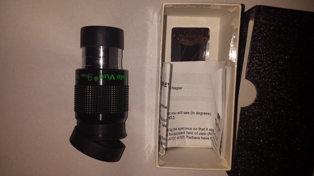 Προσοφθάλμιο Televue Nagler 9 mm T6, 1 1/4" , Κατάσταση καινούργιου, χωρίς σημάδια στο βαρελάκι του. Χρησιμοποιημένο ελάχιστα, πωλείται λόγω μη χρήσης. Νέα τιμή 200€ . Τηλ. επικοινωνίας 6973030996 ,κατά προτίμηση μετά τις 17:00 έως αργά το βράδυ Νίκος