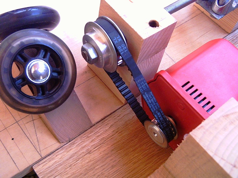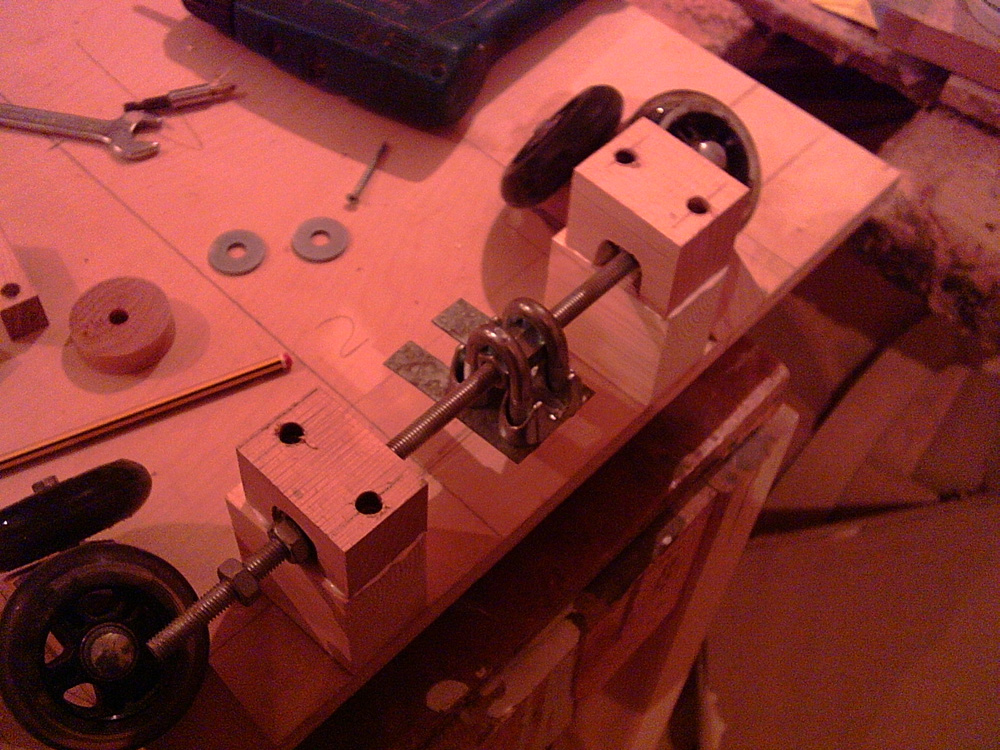 Βήμα 12ο:Στήριξη οδηγού εφαπτομένης στην πλατφόρμα. Για τη στήριξη του οδηγού απαιτεί 4 ξύλα 2 εκ των οποίων σε σχήμα U για να μπουν μέσα τα ρουλεμάν. Το ύψος του οδηγού είναι στο ύψος περίπου του Βόρειου δρομέα από κάτω προς τα πάνω. Ακολουθούν φωτογραφίες.
