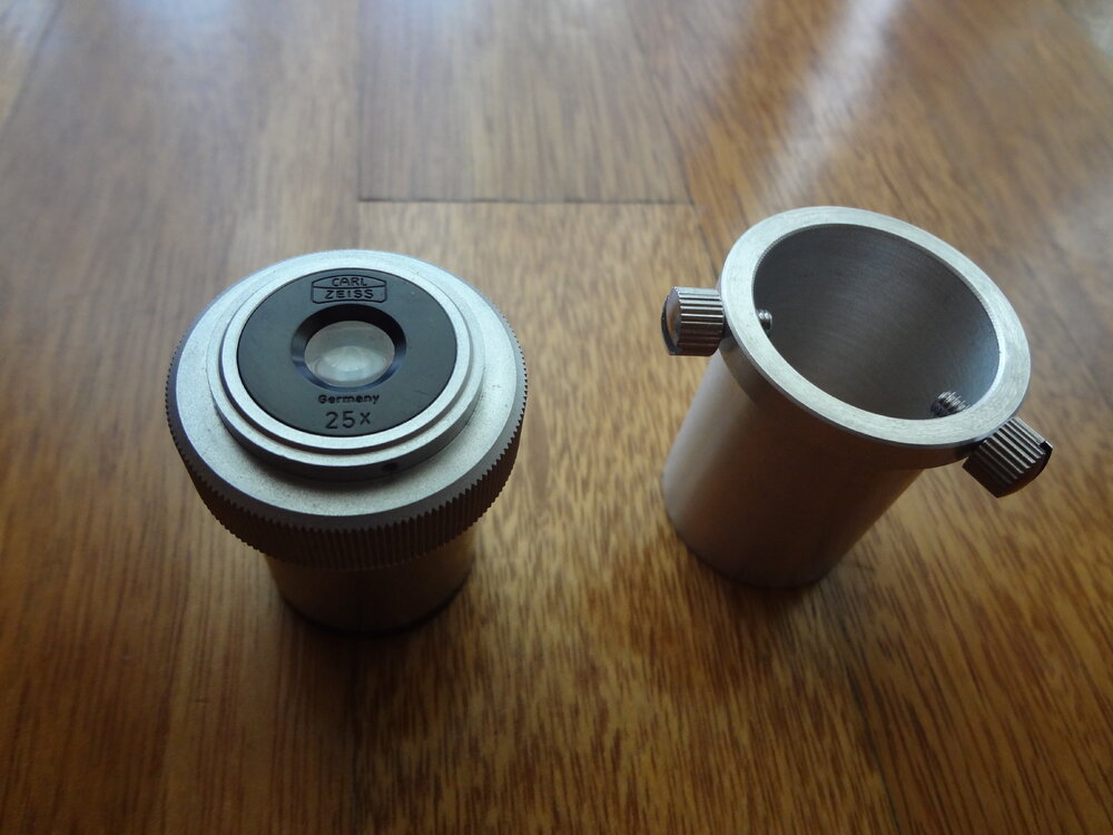 Εφτασε και το προσοφθαλμιο Carl Zeiss X25 Ο πωλητης το πούλαγε και ως αστρονομικό προσοφθάλμιο για 60 Ευρω. Πρόκεται για ενα μεταλικό και βαρυ προσοφθάλμιο 30μμ βαρέλι με ενσωματωμένώ εστιαστή, εχει 11mm εστιακό μήκος και 55 AFOV. Με το Τηλεσκόπιο f5 είδα Κρονο, Δια, Αρη και Σελήνη χωρίς κανένα πρόβλημα. Φαίνονται φωτεινά και καθαρα χωρις χρωματικά σφαλματα. Το μονο μειονέκτημα στο συγκεκριμένο ειναι οτι πρεπει να βαλεις το ματι σου πολυ κοντα στον φακό. Νομιζω οτι αξίζει τον κόπο να επενδύσει κάποιος για προσοφθάλμια μικροσκοπιου,και μια ευκαιρια να δει καποιος απο γυαλί Zeiss χωρίς πολλά χρήματα!
