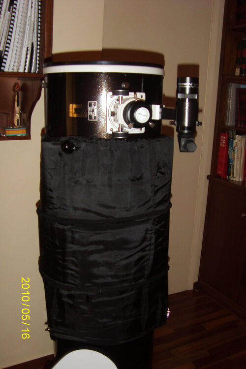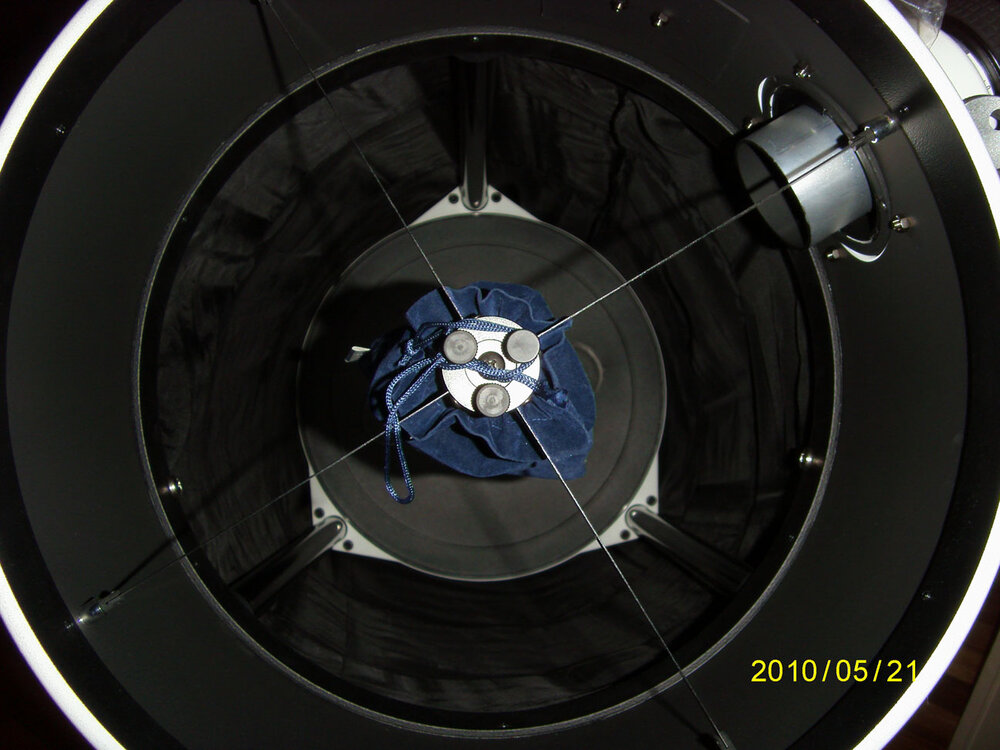 11. Την κατασκευει αυτη την εμπνευστηκα απο αυτο το Site http://www.scopesnskies.com/prod/astro-engineering/dark-cap/AC900.html Απο την πρωτη δοκιμη που εκανα με αρκετοι φωτορυπανση παρατηρησα μικρη διαφορα στα αμυδρα αστερια και εξαφανιστηκε το προβλημα αυτο με το φως να περναει φευγαλεα μπροστα στο προσοφθαλμιο. Τα περισσότερα σύγχρονα νευτώνεια τηλεσκόπια έχουν των εστιαστή τοποθετησει πολύ κοντά στο άκρο του σωλήνα και αυτό επιτρέπει στο παρασιτικο φως από την περιοχή, ακριβώς απέναντι από το εστιαστή να εισέλθει στο ανοιχτό άκρο του προσοφθάλμιου και να προκαλέσει μείωση της αντίθεσης και μείωση του τηλεσκοπίου η οποία με τη σειρά του, μειώνει την ικανότητά τους στους παρατηρητές να εντοπίσουν και να δουν ελαφρους στόχους. στο τηλεσκόπιο. Τα εξοδα της κατασκευεις ηταν 20euro και χρειαστηκε ενα κοματι 1Χ1 φυλο απο υλικο φλαντζας το οποιο ειναι ειδη μαυρο αλλα εγω το εβαψα ματ και μισω μετρο λουρι Velcro.