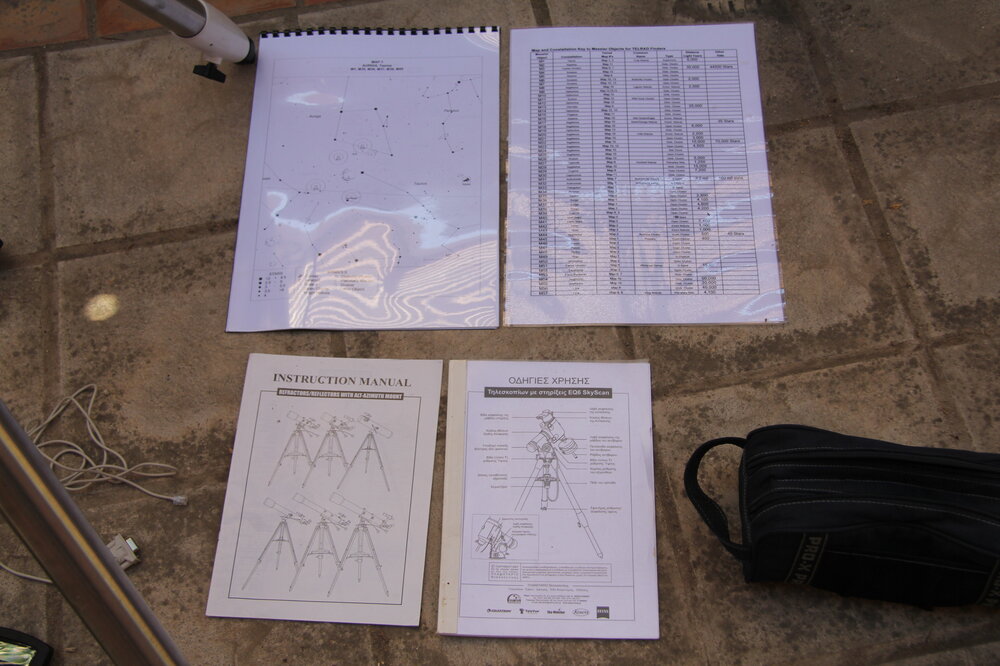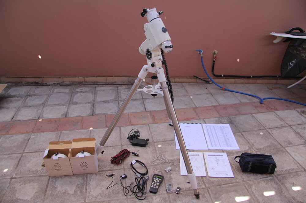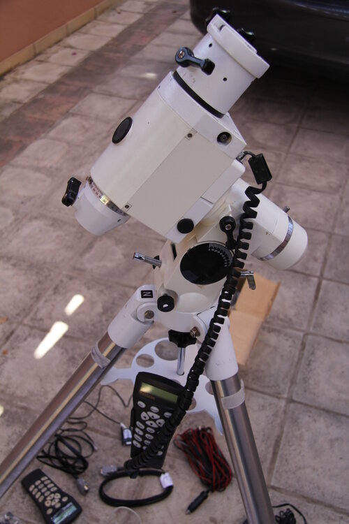 Πωλείται η γνωστή βάση HEQ5 Pro μαζί με: Δύο χειριστήρια, το καλό (με τα χρυσά γράμματα) όπως και το άλλο για εφεδρικό. Τα δύο 5κιλα αντίβαρα, καλώδιο για παροχή ρεύματος από το αμάξι, καλώδια για σύνδεση με τον υπολογιστή με ανταπτορες, κλπ., οι οδηγίες χρήσης και δώρο πλαστικοποιημένοι χάρτες σε Α3 μέγεθος με τα Messier αντικείμενα. Όλα στη τιμή των 450 ευρώ για να φυγει. Τηλ. επικοινωνίας: 6973884681 (Γιώργος) πουλήθηκε