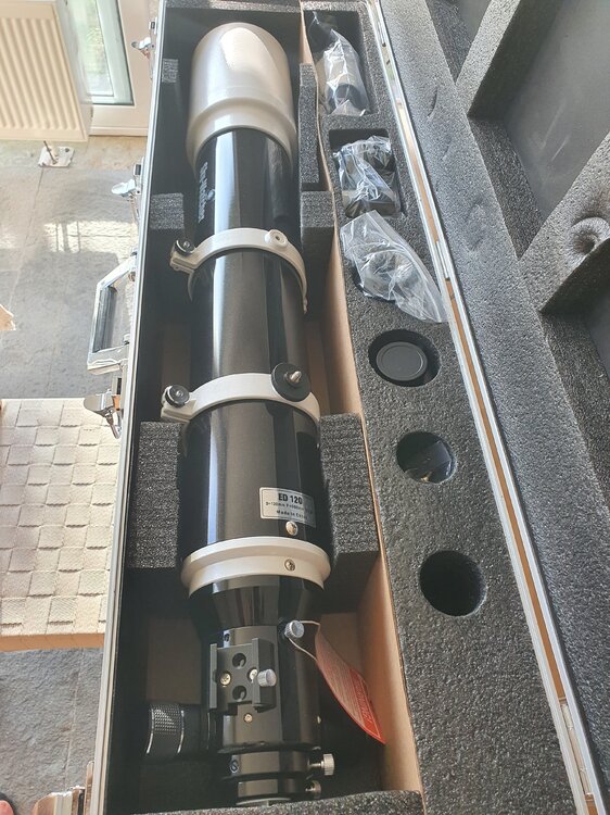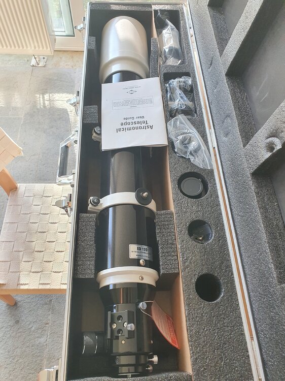 Πωλείται ολοκαίνουριο τελείως αχρισημοποίητο Sky-Watcher Evostar 120ED στη βαλίτσα του με διαγώνιο,προσοφθάλμιο LET 28mm 2'' και ερευνητή 9x50.    Σαν έξτρα τοποθετήθηκε ο πιο βελτιωμένος εστιαστής τύπου Crayford της Sky-Watcher. Μαζί δίνεται και ο Original εστιαστής που φοράει το τηλεσκόπιο.   Δεκτός έλεγχος.    Τιμή 1400 Ευρώ.