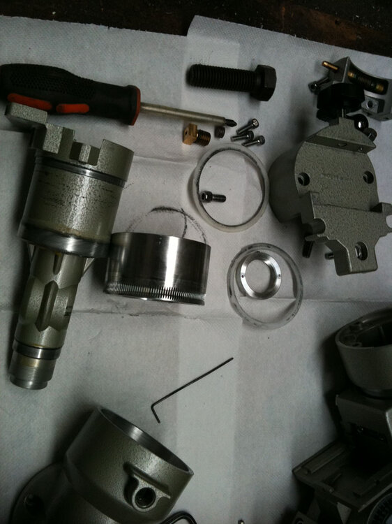 το'χα απο καιρο στο μυαλο μου, να συμαζεψω λιγο τη βαση λογω ηλικιας, και σημερα βρηκα την ευκαιρια. περιμενα να εχει μεσα ρουλεμαν, αλλα εκει απογοητετυτικα λιγο γιατι ολη η βαση και τα σημεια τριβης ειναι αλουμινιο... αλλα δεν πειραζει. η φωτο βγηκαν με αναποδη σειρα.... η ολη διαδικασια κρατησε περιπου 45', και η διαφορα ειναι μεγαλη ειδικα στα χειριστηρια αργης κινησης. η βαση πλυσιμο τα παντα με νεφτι. σ'αυτα τα κομματια προσεξα πολλες γραμμες απο γεζια ( τα αλουμινια που λεγαμε...) το ενα σημαντικο κομματι, βιδωστε το μαυρο πασο με το χερι τοσο ωστε η σκουληκοβιδα να μην εχει κενα. προσοχη ουτε πολυ σφιξιμο ουτε λιγο. μολις βρητε το σημειο σφιξτε το παξιμαδι το δευτερο σημαντικο κομματι. αυτη η κοντρα θελει προσοχη στο σφιξιμο ουτε πολυ σφιχτα ουτε πολυ χαλαρα! ολα ετοιμα!