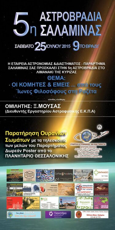 2. Αγαπητοί Αστρόφιλοι σας Προσκαλουμε στήν 5η- ΑΣΤΡΟΒΡΑΔΙΑ ΣΑΛΑΜΙΝΑΣ Μέ Τιμή Τό Δ.Σ Ο ΠΡΟΕΔΡΟΣ Η ΤΑΜΙΑΣ Ο ΓΡΑΜΜΑΤΕΑΣ Κ . ΡΑΠΑΤΖΙΚΟΣ Φ . ΒΙΛΛΙΩΤΗ Σ . ΡΑΠΤΗΣ