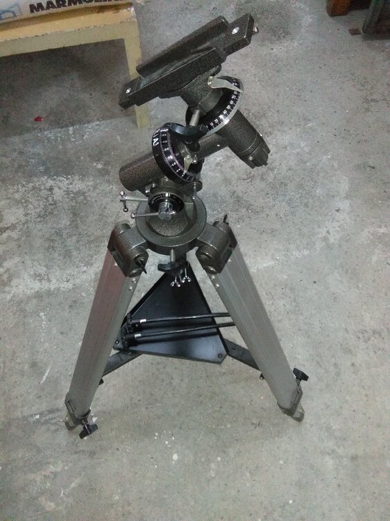 Καλησπέρα. Έχω μία EQ2 Black σε άριστη κατάσταση. Έχει αντίβαρο και χειριστήρια για μικρομετρικούς χειρισμούς της ορθής αναφοράς και της απόκλισης. Διαθέτω μαζί της και μοτέρ ορθής αναφοράς. Το τηλέφωνο μου 6932065633 Σταυρος και το email: stkouk@gmail.com ΥΓ. Προσέθεσα μια φωτογραφία της στήριξης αλλά δεν μπορώ να βάλω άλλες πχ με το μοτερ κλπ. -