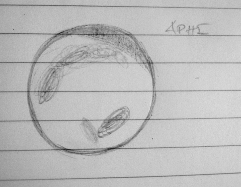 Η προχθεσινή βραδιά ήταν εξαιρετική. Τώρα συνειδητοποιώ την λειτουργία του seeing όπου 2 βραδιές χωρίς ιδιαίτερες διαφορές απέδιδαν πράγματι διαφορετικά στο προσοφθάλμιο. Η σελήνη έδωσε μια εξαιρετική εικόνα. Μέχρι και τις σκιές μέσα στους κρατήρες. Το φωτισμένο τμήμα της «έβραζε» όπως η άσφαλτος το καλοκαίρι. Το moon and skyglow δεν με ενθουσίασε. Σκούρυνε λίγο το φόντο αλλά δεν με εντυπωσίασε. Ο Δίας ο καλύτερος που έχω δει (όχι ότι έχω δει και πολλές φορές). Εκτός από τις 2 γραμμές στο μεσημβρινό και μια τρίτη προς τον ένα πόλο (ή κάποια χρωματιστές περιοχές). Ακόμα και με το 10αρι και Barlow εστίαζε. Πράγματι ένιωσα την ανάγκη για ορθοσκοπικό στα 5mm ή μικρότερη ακόμα εστιακή. Και ο Άρης πολύ καλός. Διακρινόταν ο πόλος και κάποιες περιοχές στην επιφάνεια??? του. Δυστυχώς έχασα το Κρόνο. Και από ότι φαίνεται από τα post φίλων ήταν καταπληκτικός. Κρίμα... άλλη φορά. Χρησιμοποίησα το φίλτρο ΟΙΙΙ στο Μ42. Απογοητευτικό. Σκοτείνιασαν τα πάντα και πρασίνισαν τα αστέρια. Μέχρι και ο Δομάζος θα τσαντιζόταν. Μάλλον όμως το φίλτρο δεν είναι για νεφελώματα. Το ελπίζω. Ερωτήσεις : 1. Το «βράσιμο» της Σελήνης έχει σχέση με το δορυφόρο ή με τη γήινη ατμόσφαιρα;; 2. Πως αντιμετωπίζετε το πρόβλημα του κουνήματος του Dob;; Με την παραμικρή επαφή των γυαλιών ή των φρυδιών στο προσοφθάλμιο τα πάντα τρέμουν. Άκρως απαραίτητο ένα καλό καρεκλάκι. Στις φωτό, είναι το σκίτσο μου από ότι είδα ή νόμιζα ότι είδα στον Άρη, και μια πρώτη προσπάθεια -παταγωγδώς αποτυχημένη - να κρατήσω το Δία μαζί μου. Καλές παρατηρήσεις -