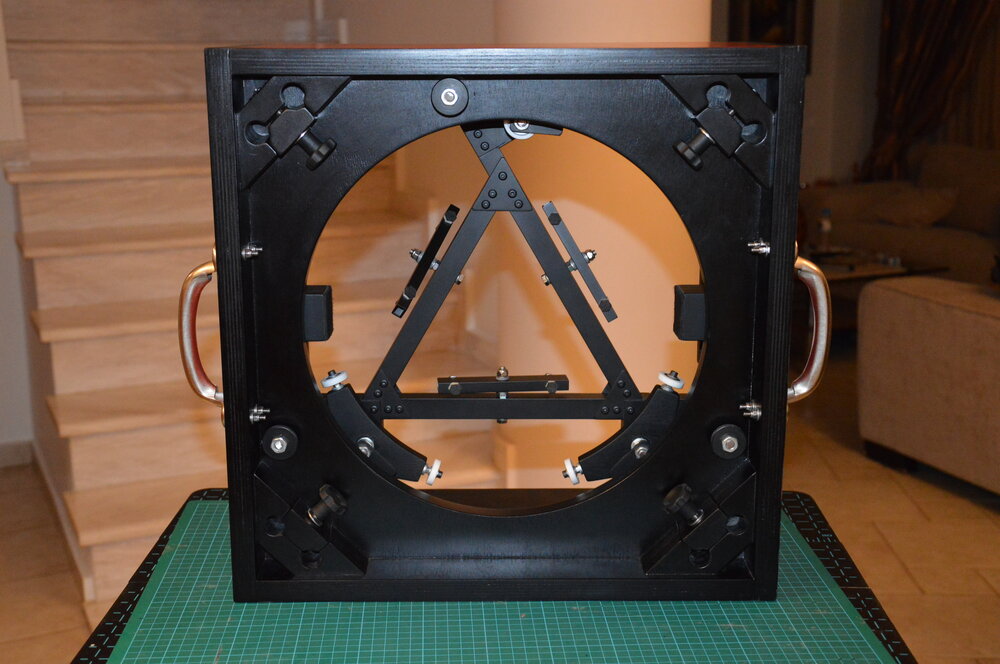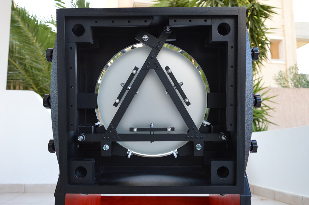 Αφού το επιβεβαιώνεις και εσύ Δημήτρη, μπορώ να είμαι ήσυχος για την ευθυγράμμιση . Προσανατολίζομαι σε αυτό τον τύπο κελιού για τους εξής λόγους : υποθέτω ότι επαρκεί για ένα κάτοπτρο 12 ιντσων και επειδή δεν έχω εμπειρία ηλεκτροσυγκόλλησης είναι δυνατόν, φαντάζομαι, να φτιαχτεί εναλλακτικά από αλουμίνιο με χρήση εποξικής κόλλας και πριτσινιών. Επίσης, μου αρέσει η ιδέα οτι το κάτοπτρο μετακινείται μαζί με ολόκληρο το κελί κατά την ευθυγράμμιση, γεγονός που επιτρέπει εναλλακτικούς τρόπους πλευρικής στήριξης του κατόπτρου ( 2 πλευρικά στηρίγματα, όπως φαίνεται στη φωτογραφία, στις + - 45 μοίρες από την κατακόρυφο ή 4 τύπου ''whiffletree'' στις +- 22.5 και 67.5 μοιρες αντίστοιχα), εξασφαλίζοντας παράλληλα ότι η στήριξη του θα γίνεται πάντα στην νοητή γραμμή του κέντρου βάρους του. Βέβαια, στο συγκεκριμένο της φωτογραφίας δεν φαίνεται να έχει προβλεφθεί η ύπαρξη στηριγμάτων για την ασφάλεια του κατόπτρου σε περίπτωση που βρεθεί στην οριζόντιο. Και συμφωνώ απόλυτα ότι στερείται της στιβαρότητας των κλασσικών ανοξείδωτου πλαισίου και οπωσδήποτε απαιτεί έναν αρκετά ανθεκτικό και ακριβή τρόπο στήριξης στα τοιχώματα του mirror box.