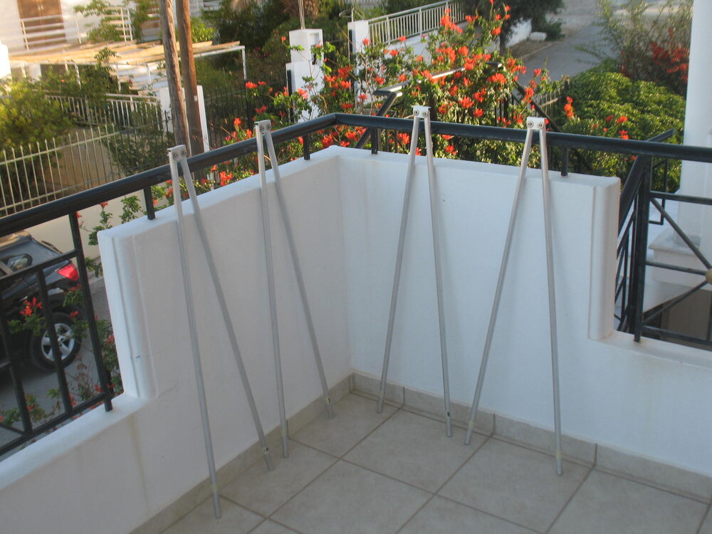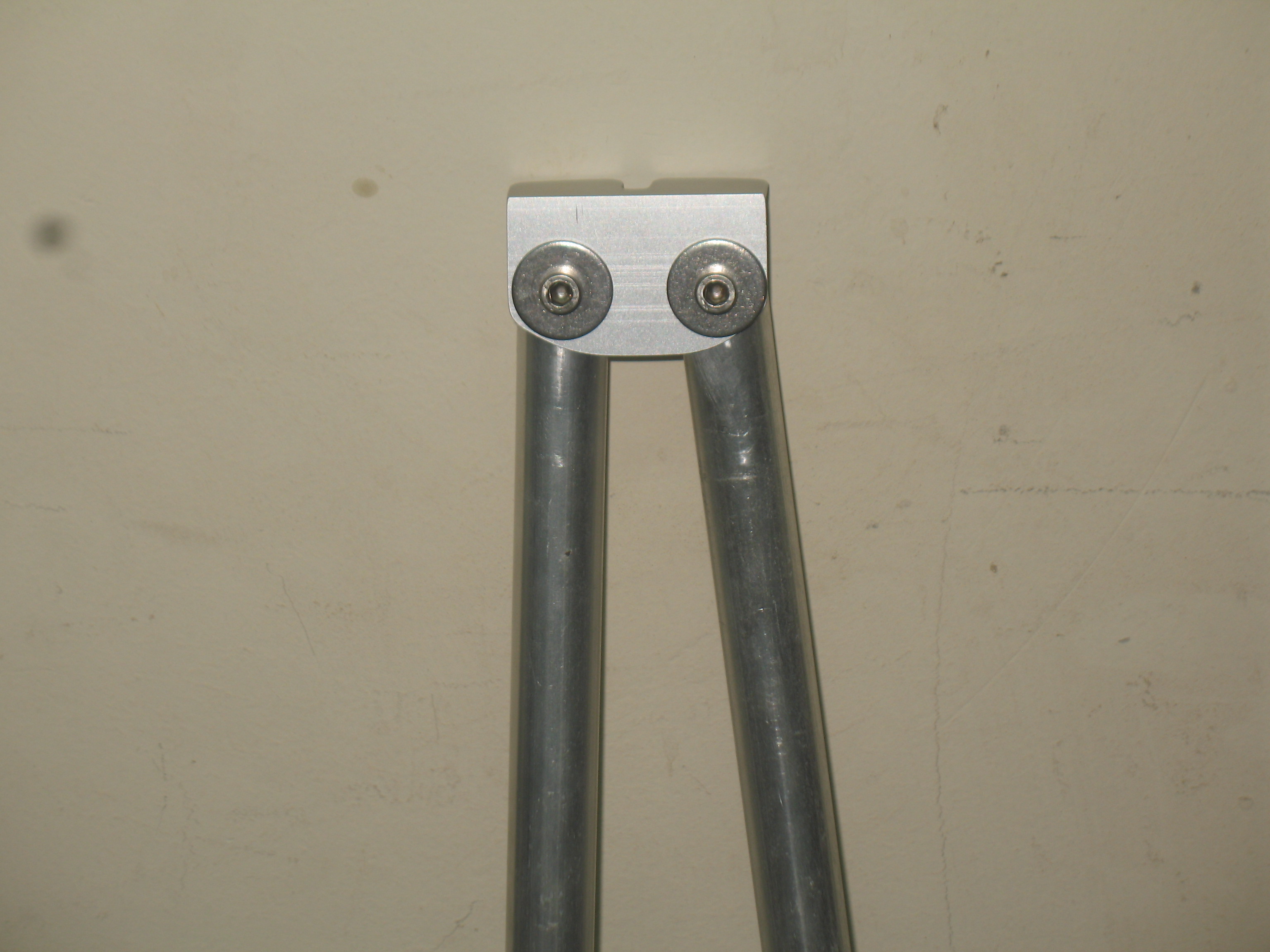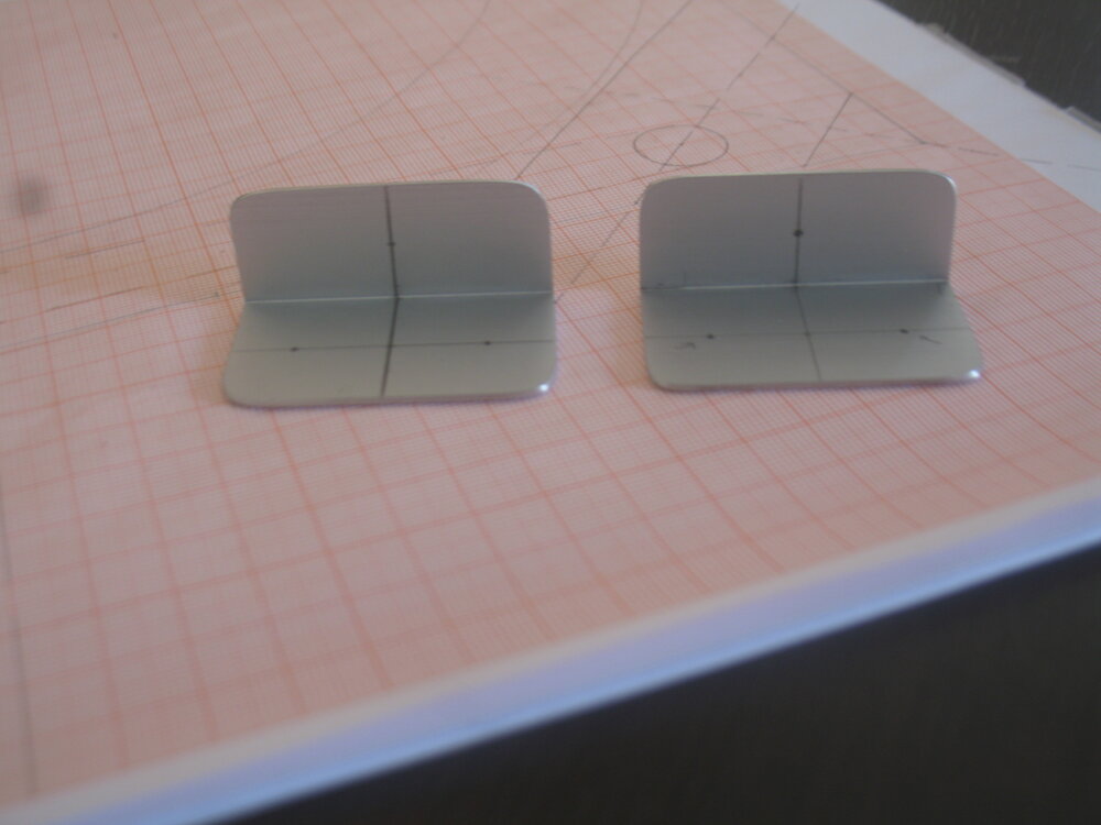 ΣΥΝΔΕΣΕΙΣ ΣΤΟΝ ΑΝΩ ΚΛΩΒΟ Για να μειώσω όσο μπορώ, το βάρος και τις ροπές στον άνω κλωβό, αποφάσισα να κατασκευάσω μόνος μου τις μεταλλικές γωνίες σύνδεσης των αντιστηριγμάτων με τον άνω κλωβό από γωνία αλουμινίου 40Χ40 (και πάχους 2 mm περίπου). Οι τελικές γωνίες που κατασκεύασα έχουν διαστάσεις 20X30X50 mm. Τα τρυπήματα στις γωνίες, βάσει του σχεδιασμού μου, έπρεπε να γίνουν ετσι ώστε οι άξονες των αντιστηριγμάτων να απέχουν μεταξύ τους 3 cm. Οι σωλήνες τρυπήθηκαν στο 1 cm από την μία άκρη τους. Για το βίδωμα των σωλήνων στις γωνίες χρησιμοποίησα ανοξείδωτες αλενόβιδες, ροδέλες και παξιμάδια ασφαλείας Μ5. Μεταξύ των σωλήνων και της εσωτερικής επιφάνειας της κάθε γωνίας παρεμβάλλεται πλαστική ροδέλα M5 για να μην τρίβονται μεταξύ τους : Πλαστική ροδέλα για να μην έρχονται σε επαφή και φθίρονται Αντιστηρίγματα και συνδέσεις άνω κλωβού 2 Αντιστηρίγματα και συνδέσεις άνω κλωβού 1 Τελική μορφή μεταλλικών συνδέσεων άνω κλωβού Σημείωση των θέσεων των τρυπών στις μεταλλικές γωνίες