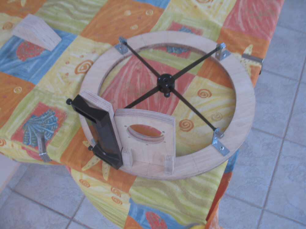 Γειά σας, μετά από πολλή σκέψη και μελέτη αποφάσισα να επιχειρήσω την κατασκευή ενός χειροποίητου dob τηλεσκοπίου με αντιστηρίγματα χρησιμοποιώντας το κάτοπτρο ενός 10ιντσου dob της GSO, του οποίου είμαι ήδη κάτοχος. Οι κυριότεροι λόγοι που με ώθησαν στο συγκεκριμένο εγχείρημα είναι καταρχάς η εμπειρία και οι γνώσεις που αποκομίζεις από μια τέτοιου είδους κατασκευή, η ανάγκη αναθέρμανσης του ενδιαφέροντός μου για το συγκεκριμένο χόμπυ, το οποίο λόγω έλλειψης χρόνου είχε ατονίσει το τελευταίο διάστημα, και τέλος κάποιες λειτουργικές ατέλειες που συνοδεύουν, κατά την γνώμη μου, τα μαζικής παραγωγής τηλεσκόπια. Εν προκειμένω, ως κάτοχος του GSO, το οποίο είναι κλειστού σωλήνα, με προβλημάτιζαν τα ακόλουθα : α) Η φορητότητα του συγκεκριμένου τηλεσκοπίου. Ο σωλήνας πιάνει ολόκληρο το πίσω κάθισμα στο αυτοκίνητο περιορίζοντας τον χώρο των αποσκευών και κυρίως των επιβατών κατά τις εξορμήσεις π.χ. στον Πάρνωνα. Επίσης, αν και 10ιντσο, η βάση του είναι αρκετά ογκώδης για το πορτ-μπαγκάζ. β) Παρά την πολύ καλή κίνηση στο αζιμούθιο και τον ευρηματικό μηχανισμό που διαθέτει για την ρύθμιση του κέντρου βάρους κατά την αυξομείωση βάρους στο μπροστινό μέρος, όταν το βάρος των παρελκομένων ξεπερνάει ένα όριο, η κίνηση καθ'ύψος γίνεται νευρική και δεν μπορεί να ισορροπήσει εύκολα. γ) Το υπερμεγέθες δευτερεύον κάτοπτρο των 63 mm, το οποίο ναι μεν (σύμφωνα με τo newt for the web) δίνει ένα πλούσιο 100% illumination field της τάξεως των 0,65-0,70 μοιρών (ότι πρέπει για deep-sky παρατήρηση), ωστόσο προκαλεί μια κεντρική παρεμπόδιση 25% στο πρωτεύον κάτοπτρο. Επομένως, η ιδέα ανακατασκευής του σε μορφή Truss Dobsonian γεννήθηκε από την προοπτική της ευκολότερης μεταφοράς του, καθώς θα μπορεί να σπάει σε 3 μέρη, αλλά και από την δυνατότητα παρέμβασης και βελτίωσης, έστω και θεωρητικά, κάποιων λειτουργικών παραμέτρων. Η γενική διαδικασία κατασκευής που ακολουθώ, έχει περιγραφεί αναλυτικά και εκτενώς από τους Μανούσος και ioannisb στα αντίστοιχα post των καταπληκτικών κατασκευών τους : http://www.astrovox.gr/forum/viewtopic.php?t=17643 http://www.astrovox.gr/forum/viewtopic.php?t=16285 http://www.astrovox.gr/forum/viewtopic.php?t=18481 Επίσης, βασίστηκα και σε άλλες παρόμοιες σελίδες χειροποίητων κατασκευών στο internet, μεταξύ των οποίων, ως προς την επεξήγηση των βημάτων και την λεπτομέρεια, ξεχωρίζω την ακόλουθη : http://www.reinervogel.net/index_e.html Για τα ξύλινα μέρη του τηλεσκοπίου χρησιμοποιείται κόντρα πλακέ θαλάσσης τύπου σημύδας πάχους 15 mm. Η σύνδεση του άνω κλωβού με το mirror box θα γίνει με αντιστηρίγματα από σωλήνες αλουμινίου Φ18 (και πάχος τοιχώματος 2 mm). Στη συνέχεια θα αναφέρω κάποιες σχεδιαστικές παραμέτρους του υπό κατασκευή τηλεσκοπίου : ΑΝΩ ΚΛΩΒΟΣ Αποτελείται από μία κυκλική στεφάνη εσωτερικής διαμέτρου 28,5 cm και εξωτερικής 36 cm. Με τη βοήθεια του newt for the web, επιλέχθηκε η ελάχιστη δυνατή εσωτερική διάμετρος ώστε ο εστιαστής να είναι όσο το δυνατόν εγγύτερα στο δευτερεύον κάτοπτρο χωρίς ωστόσο να έχω vignetting στην είσοδο του τηλεσκοπίου. Για να μειώσω την κεντρική παρεμπόδιση από το δευτερεύον στο 20% (από το 25% του εργοστασιακού), εξασφαλίζοντας ταυτόχρονα ένα ικανοποιητικό 100% illumination field γύρω στις 0,5-0,6 μοίρες αποφάσισα να αγοράσω ένα καινούριο δευτερεύον των 50 mm με Hilux επιστρώσεις από την Orion Optics UK, καθώς και έναν low profile 2'' helical focuser από την Kineoptics. Παράλληλα, θεωρητικά τουλάχιστον, αυτή η αντικατάσταση του δευτερεύοντος θα αυξήσει την ολική reflectivity του τηλεσκοπίου από το 94*92= 86,5% ( από το σ