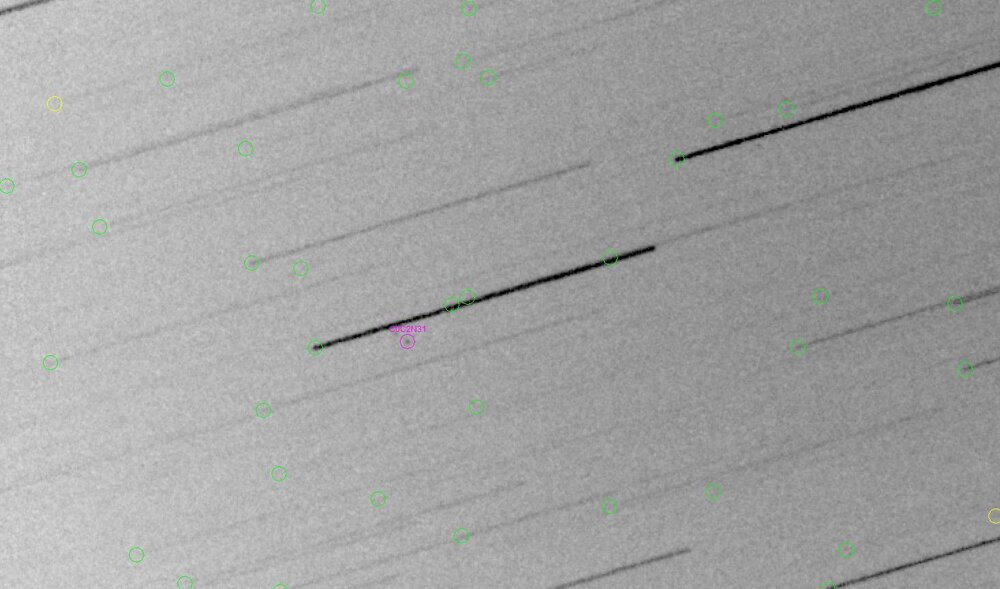 Άλλος ένας αστεροειδής (Near Earth Object) με την κωδική ονομασία C0C24D1, που προσέγγισε τη Γη πριν από λίγες μέρες.. Όταν έκανα τη καταγραφή ήταν στα 18.8mag.Το μέγεθός του κυμαίνεται από τα 24-128m. To εν λόγω αντικείμενο συνεχίζει να παρακολουθείται από διάφορους σταθμούς παγκοσμίως, αν και τώρα είναι ορατό στο Νότιο Ημισφαίριο. Οι τελευταίες μετρήσεις έγιναν στη Ναμπίμπια, Αργεντινή και Αυστραλία. Υπάρχει περίπτωση μάλιστα και να μην προσδιοριστεί ακριβώς η τροχιά του και να μπει σε ένα κατάλογο με άλλα εκατομμύρια αντικείμενα, που ενώ είχαν εμφανιστεί τα παλιότερα χρόνια, δεν κατόρθωσαν να καθορίσουν και αυτών την τροχιά τους και περιμένουμε μήπως ξαναεμφανιστούν...