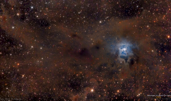 Το NGC 6888 είναι νεφέλωμα στον αστερισμό Κύκνος, σε απόσταση 4.700 ετών φωτός. Δημιουργήθηκε από τους ισχυρούς αστρικούς ανέμους του αστέρα Βολφ-Ραγιέ WR136, οι οποίοι προσκρούουν στα αέρια που απέβαλε το άστρο όταν ήταν ερυθρός γίγαντας. Το νεφέλωμα εκπέμπει ακτίνες Χ από την περιφέρειά του. Βικιπαίδεια Συνολικη εκθεση ~10h Ha+oiii Telescope: Skywatcher evostar 72ED + OVL FF Mount: HEQ5 Pro synscan + Pegasus Astro eqdir Camera: Starlight Xpress sxv-h9 mono Filters: Baader Ha 7nm & Oiii 8.5nm Guiding: QHY5 mono uv/ir cut + 8x50 TS Optics Finderscope Software: eqmod,phd,apt--- dss,photoshop,pixinsight Location: Vrissai Kyparissia