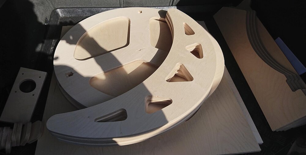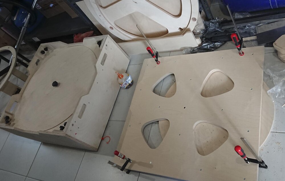 Το τηλεσκόπιο στην τελική μορφή μέχρι στιγμής θα είναι όπως το σκίτσο. Το σύστημα των ρουλεμάν στο αλτ ολοκληρώθηκε. Σήμερα παρέλαβα και τη 2η και τελευταία φουρνιά των ξύλων κομμένα σε cnc router. Θα κολλήσω τώρα τα διπλά ξύλα και συνεχίζουμε...