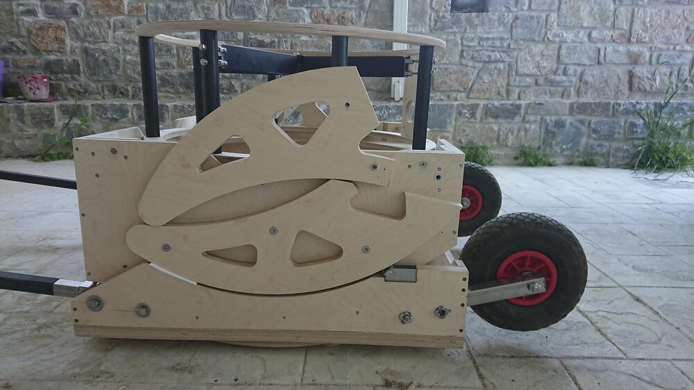 Το έστησα χθες για 1η φορά για να το δοκιμάσω. Όλα πήγαν καλά, απλώς θέλει ένα μικρό βαρίδι πάνω για να ισορροπεί (το είχα υπολογίσει ώστε να μπορώ να προσθέσω εξοπλισμό). Επίσης η κίνηση για να γίνει ιδανική θέλει κάποιες μικροδιορθωσούλες. Το συνολικό βάρος βγαίνει περίπου στα 84 κιλά.