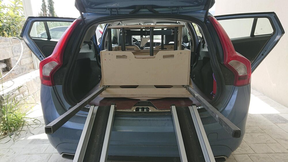 Έκανα και τις τελευταίες (ελπίζω) προσθήκες και ψιλομετατροπές με σκοπό να βελτιστοποιηθεί η μεταφορά του και να μπαίνει όλο μαζί στο αυτοκίνητο. Συνεχίζουμε με στοκαρίσματα, τριψίματα, βαψίματα και βερνικώματα.