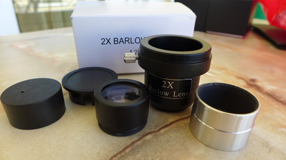 6. Πωλείται Skywatcher Deluxe 2x BARLOW / T-adapter (1.25") Σε άριστη κατάσταση, έχει αγοραστεί πριν 3 μήνες και έχει χρησιμοποιηθεί ελάχιστα., με τη συσκευασία του. Ο συγκεκριμένος barlow μπορεί να χρησιμοποιηθεί και σαν φωτογραφικός αντάπτορας. Διαθέτει σπειρώματα (T-thread) στα οποία μπορεί να προσαρμοσθεί δαχτυλίδι (T-RING) για τη σύνδεση φωτογραφικής μηχανής DSLR κάμερας. ΕΠΩΛΗΘΗ Επικοινωνια με πμ Ευχαριστώ, Γιώργος.