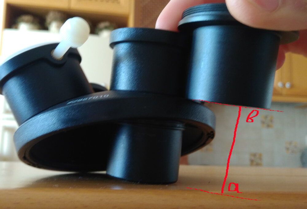 3. Καλησπερα Στελνω τις αποστασεις απο τα σημεία που υπεδειξες (φωτογραφιες 1&2) Στην εικονα 3 δειχνω την αποσταση που νομιζω οτι "υψωνεται" το προσοφθαλμιο. Στο επιπεδο α βρισκεται το κατω μερος απο το "βαρελακι" του προσοφθαλμιου ενω στο επιπεδο β θα βρισκεται μετα την προσθηκη του turret (εχω βαλει διπλα ενα nosepiece για να αναπαραστησω προσοφθαλμιο που δεν ειχα εύκαιρο), οποτε η αποσπαση που μας ενδιαφερει ειναι η α-β. Στην φωτογραφια 4 δειχνω turret μαζι με τροχο φιλτρων 1.25. Πραγματι, σε καποια θεση "βρισκουν" μεταξυ τους αλλα με περιστροφη του turret ερχονται στην θεση που φαινεται στην φωτογραφια. Παντως η ολη διαταξη δεν ηταν πολυ σταθερη στο Mak127 καθως με περιστροφη για αλλαγη φιλτρου ή αλλαγη προσοφθαλμιου το ολο συστημα κουνιοταν λιγο. Παρεπιπτοντως, το mak127 καταφερνε να εστιαζει με διαγωνιο+turret+τροχο οτι προσοφθαλμιο δοκιμασα αλλα και DSLR μηχανη. Τελος νομιζω οτι με ενα εστιαστη χαμηλου προφιλ για νευτωνιο θα πετυχεις ευκολα εστιαση με το turret... αλλα για turret+τροχο δεν ειμαι σιγουρος.