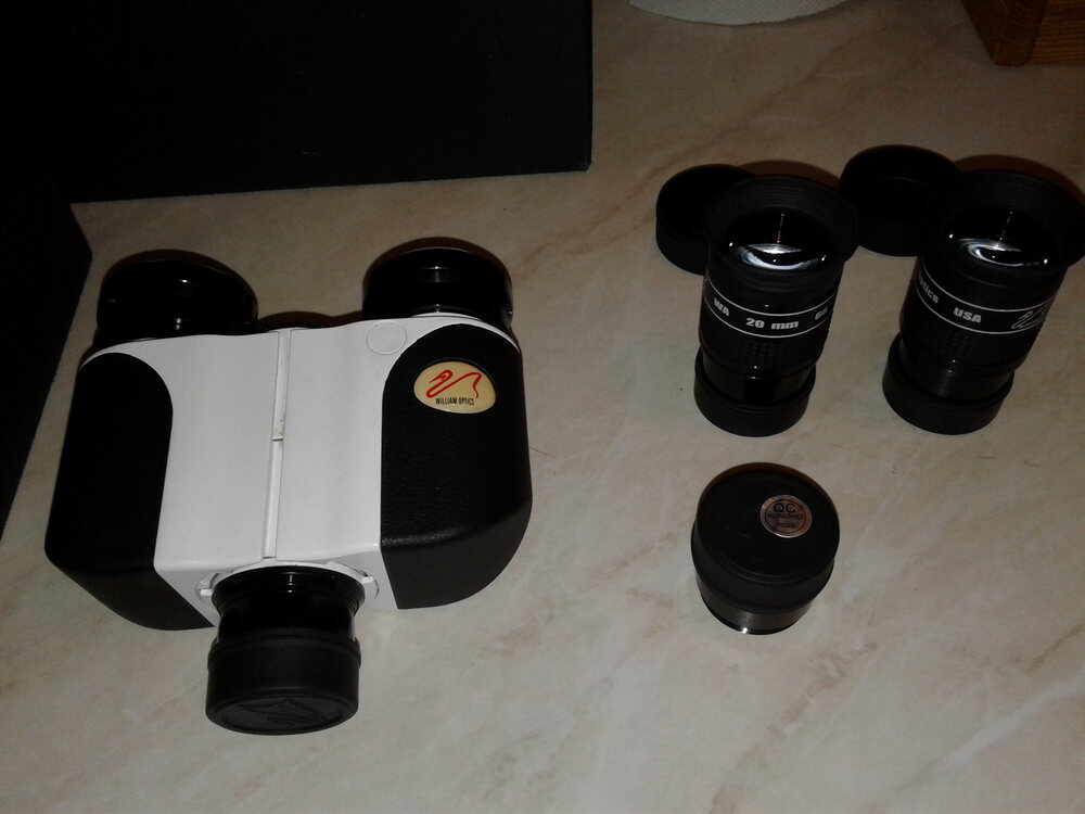 Καλημέρα, προς πώληση το binoviewer της William Οptics στα 200 ευρώ τελική τιμή. Ειναι αυτό εδώ. https://www.teleskop-express.de/shop/product_info.php/language/en/info/p1365_William-Optics-Bino-Ansatz---Set-mit-2-Okularen-und-Korrektor.html Είναι σε άριστη κατάσταση στο κουτάκι του. Περιλαμβάνει barlow 1,6x και δύο προσοφθάλμια WO στα 20mm. Ευχαριστώ Πουλήθηκε -