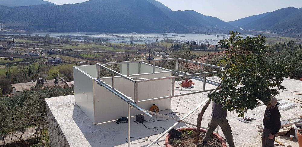 Γειά σου Παναγιώτη, και η δική μου έχει ρήση, φαίνεται εξάλλου στη τελευταία φωτό το κενό ανάμεσα στα πάνελ και τη πλάκα. Αρχικά η μεταλλική κατασκευή του παρατηρητηρίου έκατσε πάνω σε τάκους ώστε να είναι αλφαδιασμένη. Στη συνέχεια έγιναν οπές στο μπετό όπου πακτώθηκαν 10άρες μπετόβεργες ,οι οποίες στη συνέχεια κολλήθηκαν με την υπόλοιπη κατασκευή.Σε δεύτερη φάση όταν κατασκευάστηκε και το πλαίσιο για τπάτωμα ακολουθήθηκε η ίδια διαδικασία.Τα κενά φυσικά έχουν σφραγιστεί και μονωθεί εξωτερικά και εσωτερικά. Η όλη κατασκευή είναι βαρέως τύπου και δεν κάθεται απλά πάνω στη πλάκα αλλά είναι πακτωμένη όπως εξήγησα. Η κατασκευή της σε ταράτσες θέλει ιδιαίτερη προσοχή και τεχνικές ώστε να μην δημιουργθεί πρόβλημα στη πλάκα σε τυχον υφιστάμενες μονώσεις κλπ.