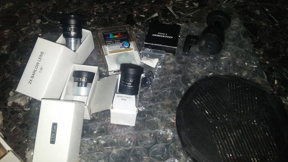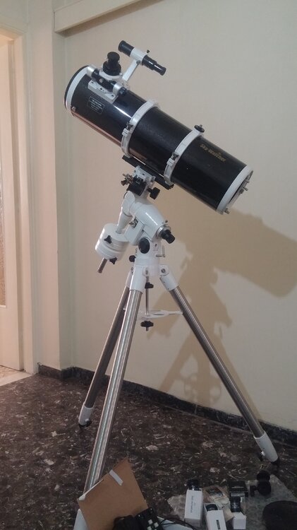 Πωλούνται τα παρακάτω, σε άριστη κατάσταση, στα κουτιά τους με όλα τα παρελκόμενα, λόγω έλλειψης χρόνου για να ασχοληθώ με το αντικείμενο. Όσο το δούλεψα, ήταν ένα πάρα πολύ καλό setup για εισαγωγή στην παρατήρηση και τη φωτογράφηση για αρχάριους. Θα δοθεί προτεραιότητα σε ενδιαφερόμενους για όλο το πακέτο. Θα ακολουθήσουν και φωτογραφίες του εξοπλισμού αλλά και λήψεων που είχα κάνει με αυτόν. Οπτικός Σωλήνας: Skywatcher 150/750 - DSF Νευτώνειος (Κατοπτρικός) http://www.planitario.gr/150-750-neutwneios-optikos-swlhnas-dsf.html Ισημερινή Στήριξη: EQ5 Steel http://www.planitario.gr/eq5-steel-ishmerinh-sthrixh.html Μοτέρ: Ορθής αναφοράς και απόκλισης για την ισημερινή στήριξη EQ5 http://www.planitario.gr/moter-orthhs-anaforas-apoklishs-gia-thn-ishmerinh-sthrixh-eq5.html Πολική διόπτρα για στήριξη EQ5 http://www.planitario.gr/polikh-dioptra-gia-sthrixh-eq5.html UHC-S, Φίλτρο Νεφελωμάτων, Ø 31,8mm (1 1/4″) http://www.planitario.gr/uhc-s-filtro-nefelwmatwn-o-31-8mm-1-1-4.html Φίλτρο Σελήνης, Ø31.8 (1 1/4″) http://www.planitario.gr/filtro-selhnhs-o31-8-1-1-4.html BARLOW 2X http://www.planitario.gr/barlow-2x-676.html T-Ring για NIKON DSLR http://www.planitario.gr/t-ring-gia-nikon-1521.html Δίνεται μαζί και μάσκα Bahtinov που είχα φτιάξει για τέλεια εστίαση. Συνολική τιμή: 900€ Μ31 μοτέρ προσοφθάλμια κλπ set-up
