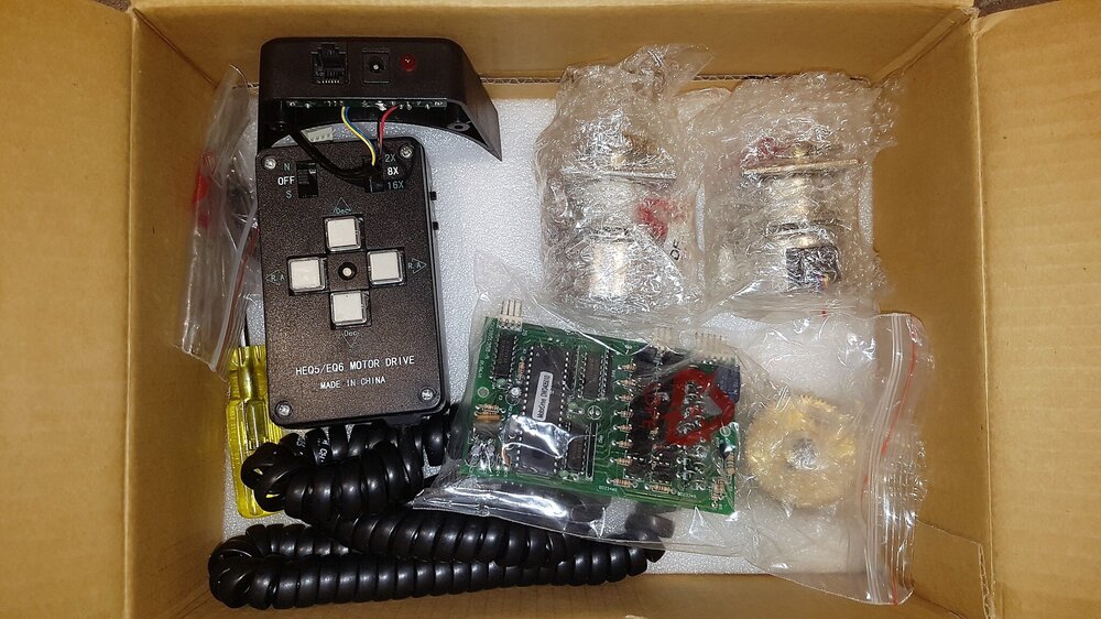 Πωλείται κιτ αποτελούμενο από τα μοτέρ, την πλακέτα, το χειριστήριο και το σημείο συνδέσεων από βάση HEQ5. Τα εξαρτήματα αφαιρέθηκαν από την βάση λόγω αναβάθμισης σε Skyscan. Τιμή: 100 -