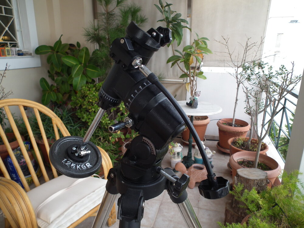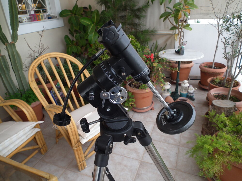 Πωλείται παλιά βάση ισημερινή από BRESSER 70/700. Η κεφαλή είναι ταλαιπωρημένη, επισκευασμένη, με αντίβαρο πατέντα αλλά λειτουργεί κανονικά. Το τρίποδο είναι πολύ γερό με πόδια στρογγυλής διατομής. Μαζί δίνεται και παλιά, ταλαιπωρημένη και με μετατροπή για απευθείας σύνδεση μεγάλων φορτίων, φωτογραφική κεφαλή βαρέως τύπου που προσαρμόζεται στο ίδιο τρίποδο (με ένα μικρό τέχνασμα). Η σύνδεση της είναι με βίδα 3/8" οπότε προσαρμόζεται και σε οποιοδήποτε τρίποδο. Το όλο σύστημα είναι παλιό αλλά ειδικά με την φωτογραφική κεφαλή μπορεί να σηκώσει μεγάλο βάρος. Επειδή είναι παλιά και τα έχω προσαρμόσει στις δικές μου ανάγκες, συνεννόηση μόνο από αττική προκειμένου να υπάρξει έλεγχος-επίδειξη, ιδανικά με ότι σκοπεύετε να βάλετε επάνω ώστε να είστε σίγουροι ότι θα κάνει αυτό για το οποίο την θέλετε. Σύνολο 60 ευρώ, δεκτές και επιμέρους προσφορές. Επικοινωνία με πμ