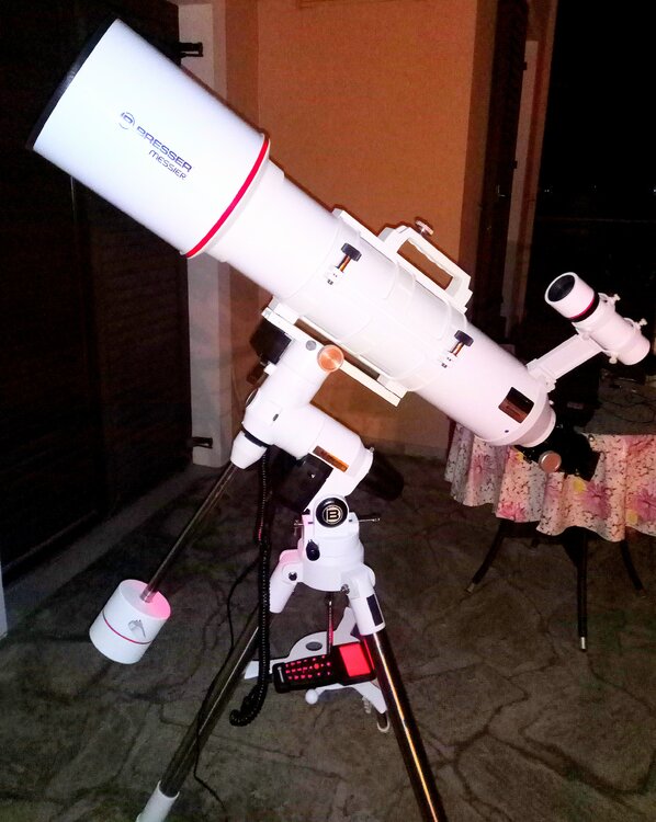 Specifications: Optics:Bresser Telescope AR 152S/760 Messier Hexafoc OTA Type Refractor Type of build Achromat Aperture (mm) 152 Focal length (mm) 760 Aperture ratio (f/) 5 Resolving capacity 0,76 Limit value (mag) 12,7 Light gathering capacity 470 Max. useful magnification 300 Tube weight (kg) 10,6 Focuser Type of build Gear rack Connection ( to eyepiece) 2 Free aperture (mm) 65 Mount Mounting type no mount GoTo control no Type of build OTA Tracking no Included accessories 1.25'' eyepieces SP 26mm Finder scope 8x50 Deviating optics 1.25", 90° star diagonal Miscellaneous Tube clamps Eyepiece adaptor 1,25" & 2" Prism rail Vixen-Style General Series Messier Special recommendation yes Area of application Moon & Planets yes Nebulae & galaxies yes Nature Observation yes Astrophotography yes Sun not recommended (Only with appropriate Sun filter) recommended for Beginners no Advanced yes Experienced amateurs yes Σε άριστη κατάσταση,στο κουτί του.Τιμη 500ευρω, έξοδα αποστολής δικά μου.Μαζι διδεται και η πλανητικη καμερα Neximage solar system image.Γιωργος Ταμβάκης Βόλος 6948504021