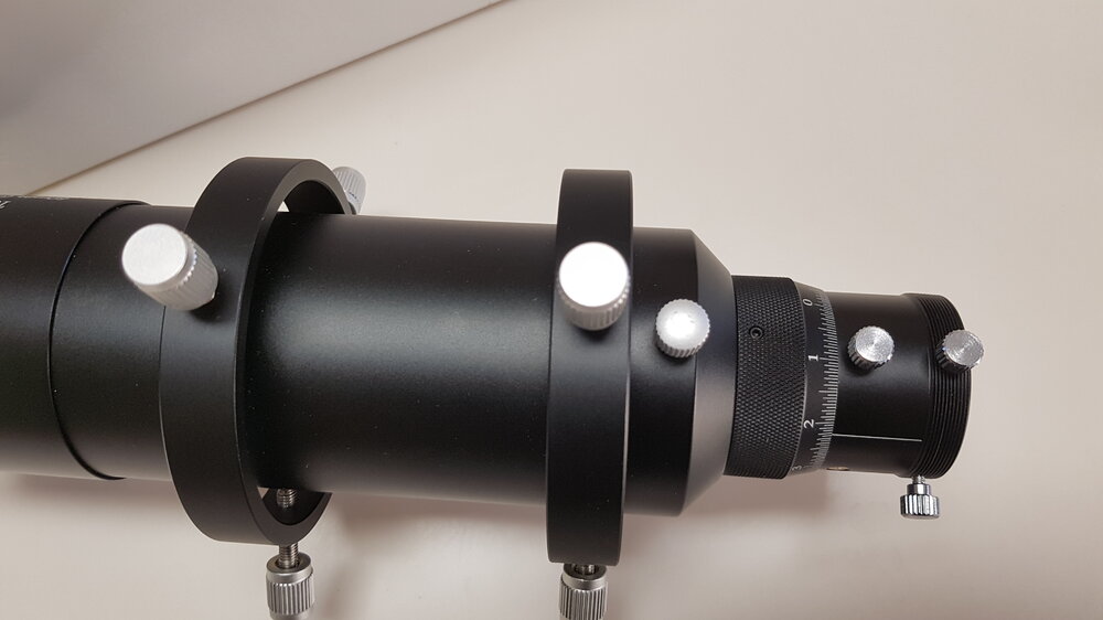 Tecnosky sharp guide 60/240 Πωλείται guide scope 60mm με εστιακή 240mm. Έχει non rotating helical focuser που τελειώνει σε σπείρωμα Τ2 για απευθείας σύνδεση κάμερας αλλά και κλασσικού τύπου για 1,25" προσοφθάλμια. Περιλαμβάνει guiding rings με μεταλλικές βίδες που στην άκρη έχουν σιλικόνη. Το "παπουτσάκι" είναι το κλασσικό που ταιριάζει στις βάσεις για finder. Είναι σε άριστη κατάσταση, αγορασμένο τον περασμένο Μάιο (υπάρχει και η απόδειξη αγοράς) και το δίνω γιατί χρησιμοποιώ OAG και δεν το χρειάζομαι. Αγορασμένο από εδώ: http://shop.tecnosky.it/Articolo.asp?SessionID=EA7BD107-B03A-4917-80F2-67054B5B00FA&GetInfo=TKsharp60&AddScore=TKsharp60&Score=1 ΤΙΜΗ 99€ Χέρι με χέρι αλλιώς τα μεταφορικά επιβαρύνουν τον αγοραστή