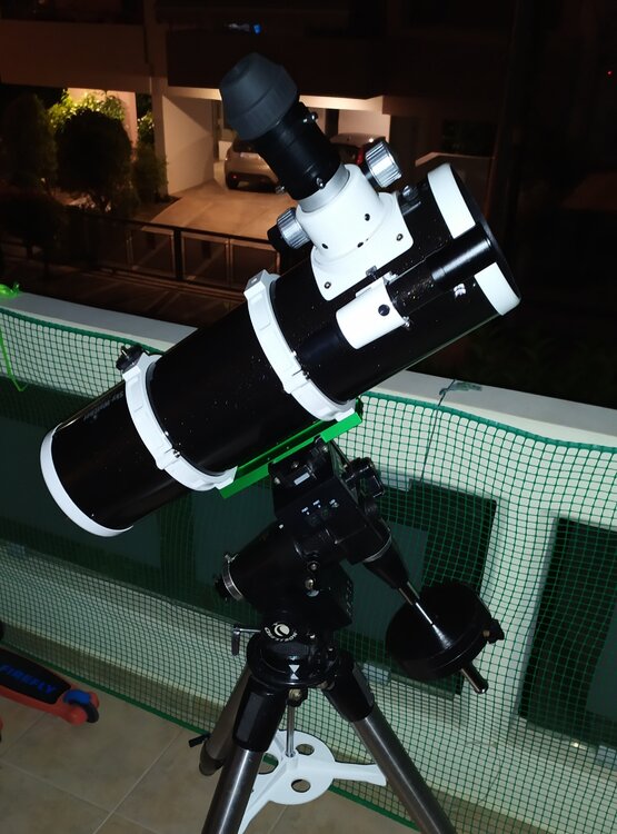 20. Η αλήθεια είναι ότι με κούρασε αρκετά. Επειδή ήμουν σε μπαλκόνι με περιορισμένη ορατότητα προς τα έξω, ακόμα και η ευθυγράμμιση ερευνητή με τηλεσκόπιο με δυσκόλεψε, λόγω της θέσης του τηλεσκοπίου που έπαιρνε από την ισημερινή. Ελπίζω ότι θα συνηθίσω. Πάντως τώρα που τα σκέφτομαι λίγο πιο καθαρά, παίζει να την πάτησα με το φρένο, γιατί σε μια κίνηση, έπαιξε και μια μικρή ολίσθηση του τηλεσκοπίου. Απλά έχοντας στο μυαλό κάτι αντίστοιχο που μου είχε συμβει στην alt-az κι ήθελε ελαφρύ σφίξιμο ένα μεγάλο παξιμάδι μέσα στην κεφαλή της βάσης, πηγε κατευθείαν το μυαλό στο σύνθετο κι όχι στο απλό Ευχαριστώ πολύ, Στέλιος