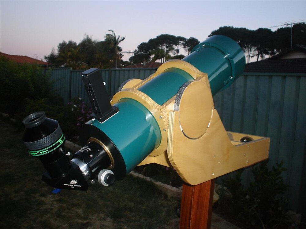 σε diy υπάρχουν και αυτές οι δύο λύσεις. το σκεφτόμουν για αυτό το τηλεσκόπιο το οποίο το πήρα αλλά τελικά το έδωσα χωρίς να το χρησιμοποιήσω. ωραίο τηλεσκόπιο. η φωτό με το πράσινο τηλέσκοπιο χρησιμοποιεί βάση την οποία μπορείς να βρεις στο βιβλίο "build your own telescope"