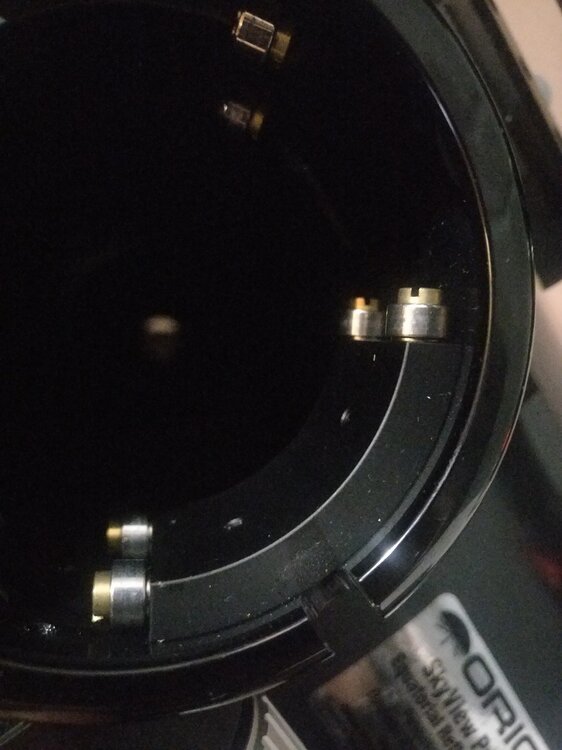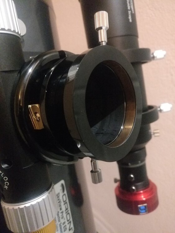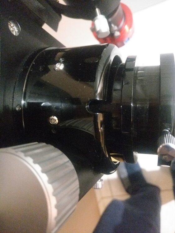 ο εστιαστης ισως ρυθμιζεται απο τις βιδες που θα δεις στο προηγουμενο post αλλα πως μπορω να το ρυθμισω με ακριβεια? μπορει να γερνει ναι λογω βαρους αλλα αν δεις στο site λεει οτι αντεχει 8kg , αντε να πω οτι 8 ειναι για παρατηρηση.. η καμερα με τον διορθωτη ειναι 1-1,5kg.. μηπως ομως το extender που εχει ο εστιαστης ειναι λιγο αποτυχια και μολις σφιγγω την βιδα γερνει? εχει compression ring παντως μεσα.photo attached μηπως με focuser squaring τωρα που εχω καλο laser να κανει δουλεια? αλλα ποιος ειναι ο καλυτερος τροπος για αυτη τη δουλεια? η καμερα ειναι stock, γιατι αποκλειεται να το κανω αυτο μονος μου και δεν γνωριζω και καποιο καταστημα να κανει τετοια δουλεια. θα δοκιμασω και χωρις τον διορθωτη οταν με το καλο καθαρισει ο καιρος. -