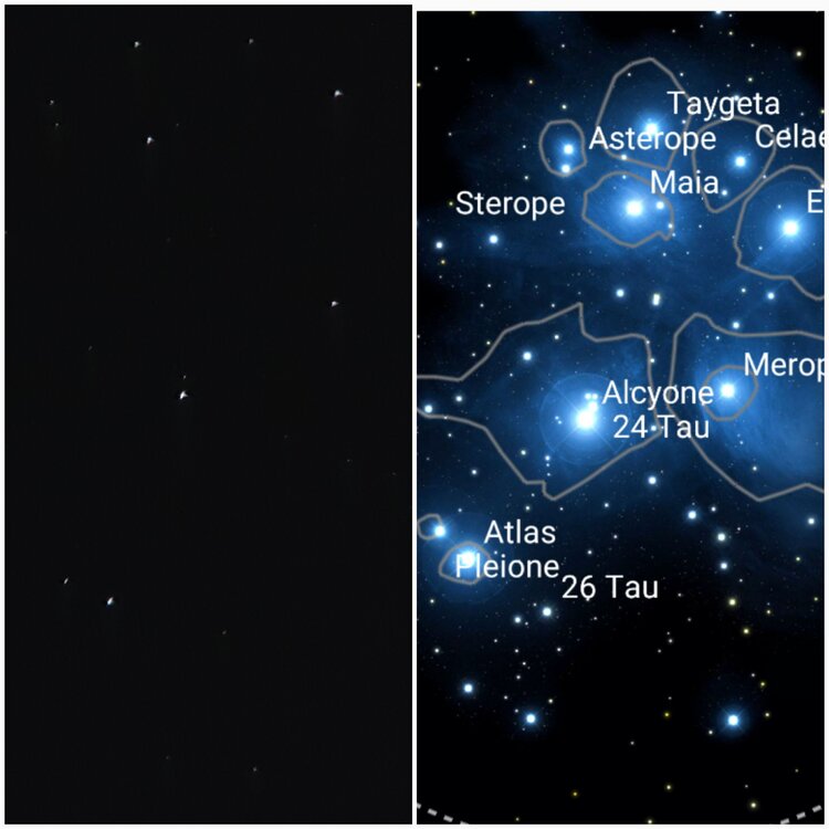 Αυτές είναι δύο φωτογραφίες που είχα τραβήξει με το κινητό μέσα από αυτό το μονόκιαλο. Χωρίς αντάπτορα, με το χέρι, στην αυτόματη λειτουργία της κάμερας του κινητού single shot. Πλειάδες Bresser - Πλειάδες SkySafari Σελήνη