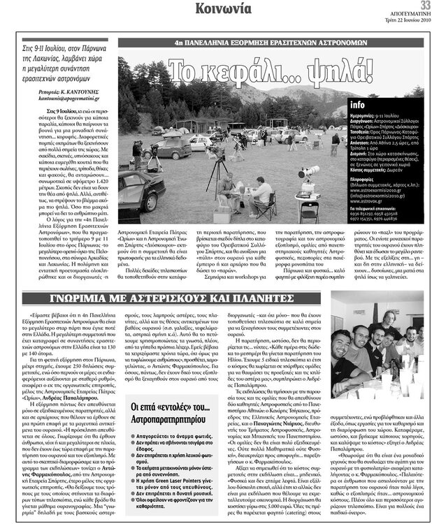 Ευχαριστούμε τον Κώστα Καντούνη και την Απογευματινή για το πολύ καλό και εκτενές αφιέρωμα! Πράγματι ο δαίμονας του τυπογραφείου ξαναχτύπησε με τους αστερίσκους αλλά δεν πειράζει! -